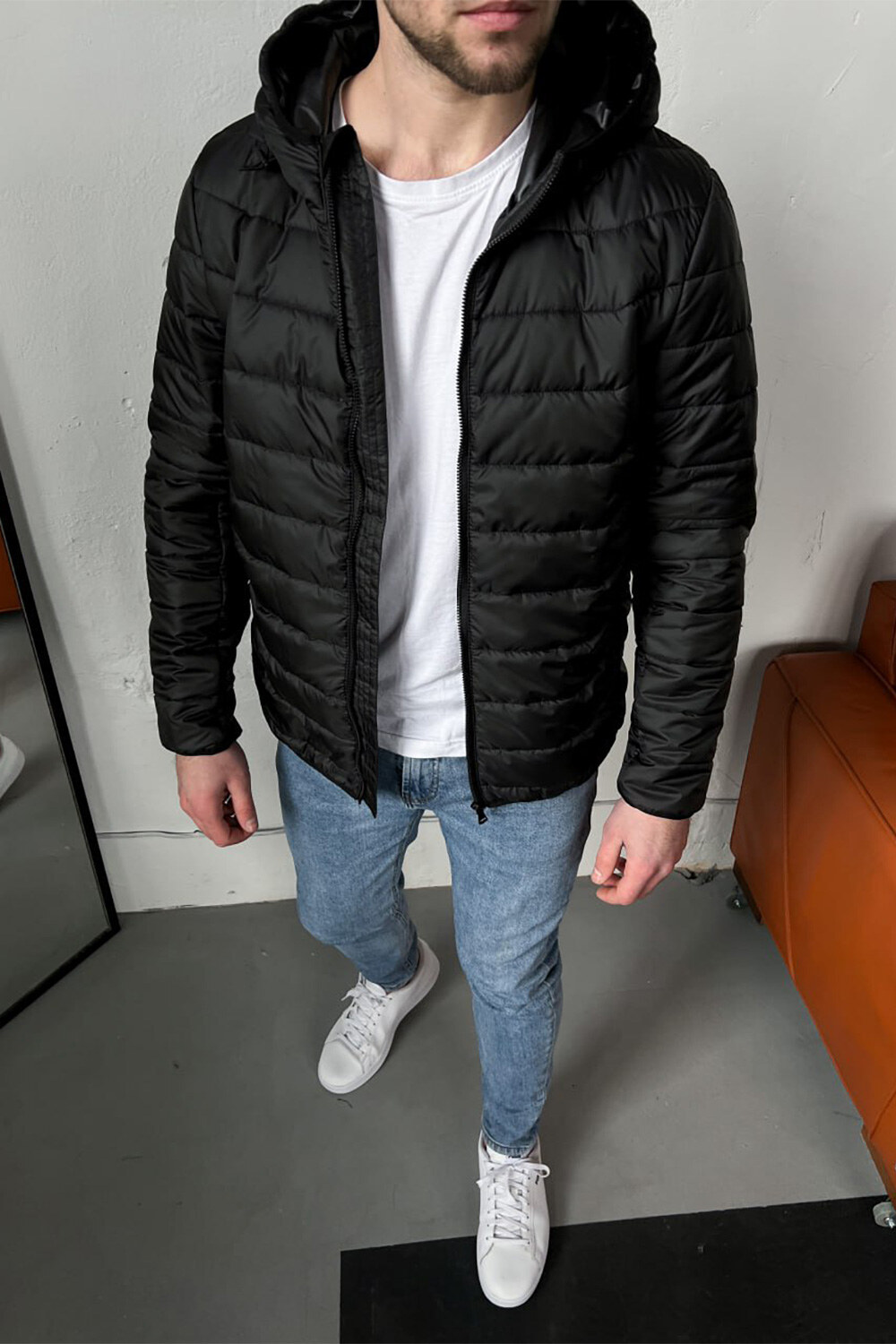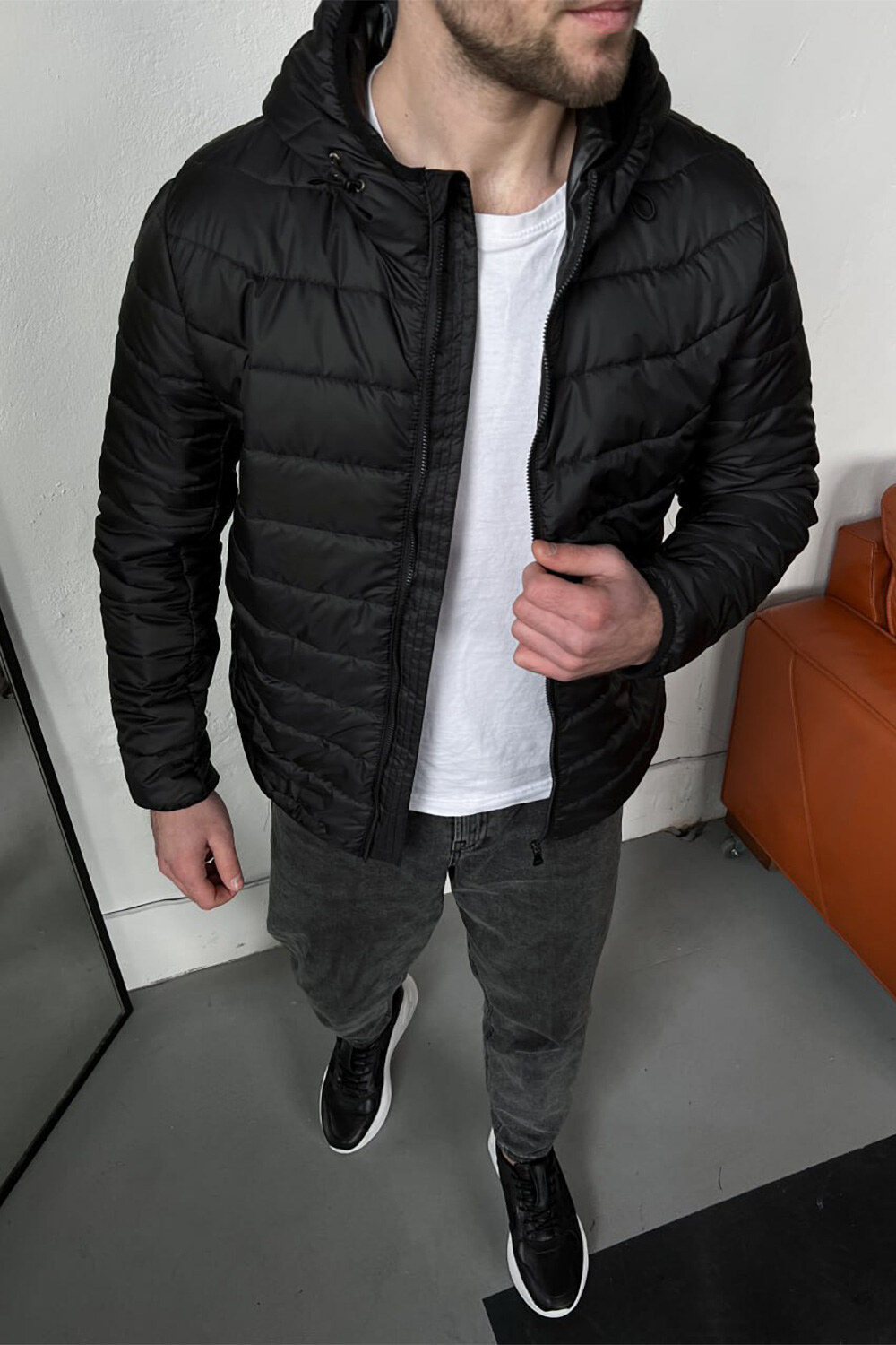 Черная стеганная куртка короткая с капюшоном TUR WEAR 8037073