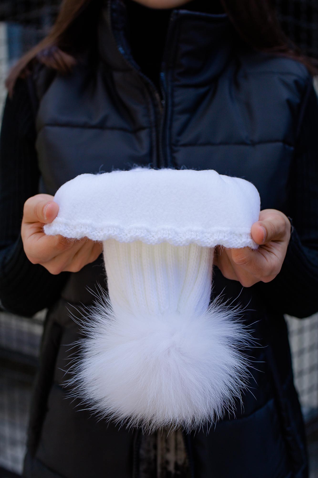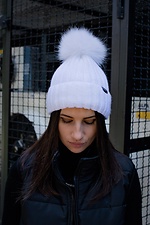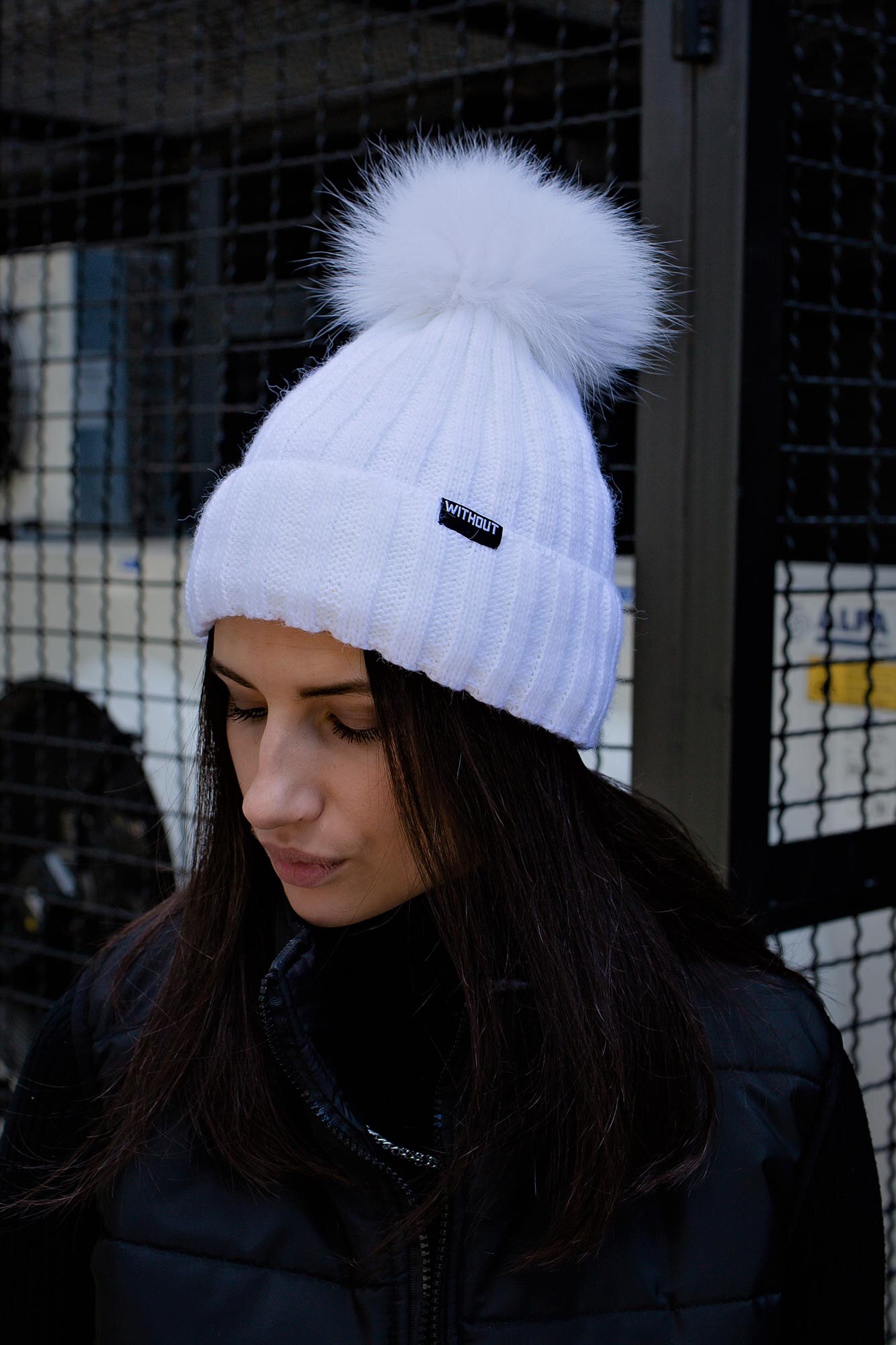 Dzianinowa czapka zimowa z futrzanym pomponem i polarową podszewką Without 8048808