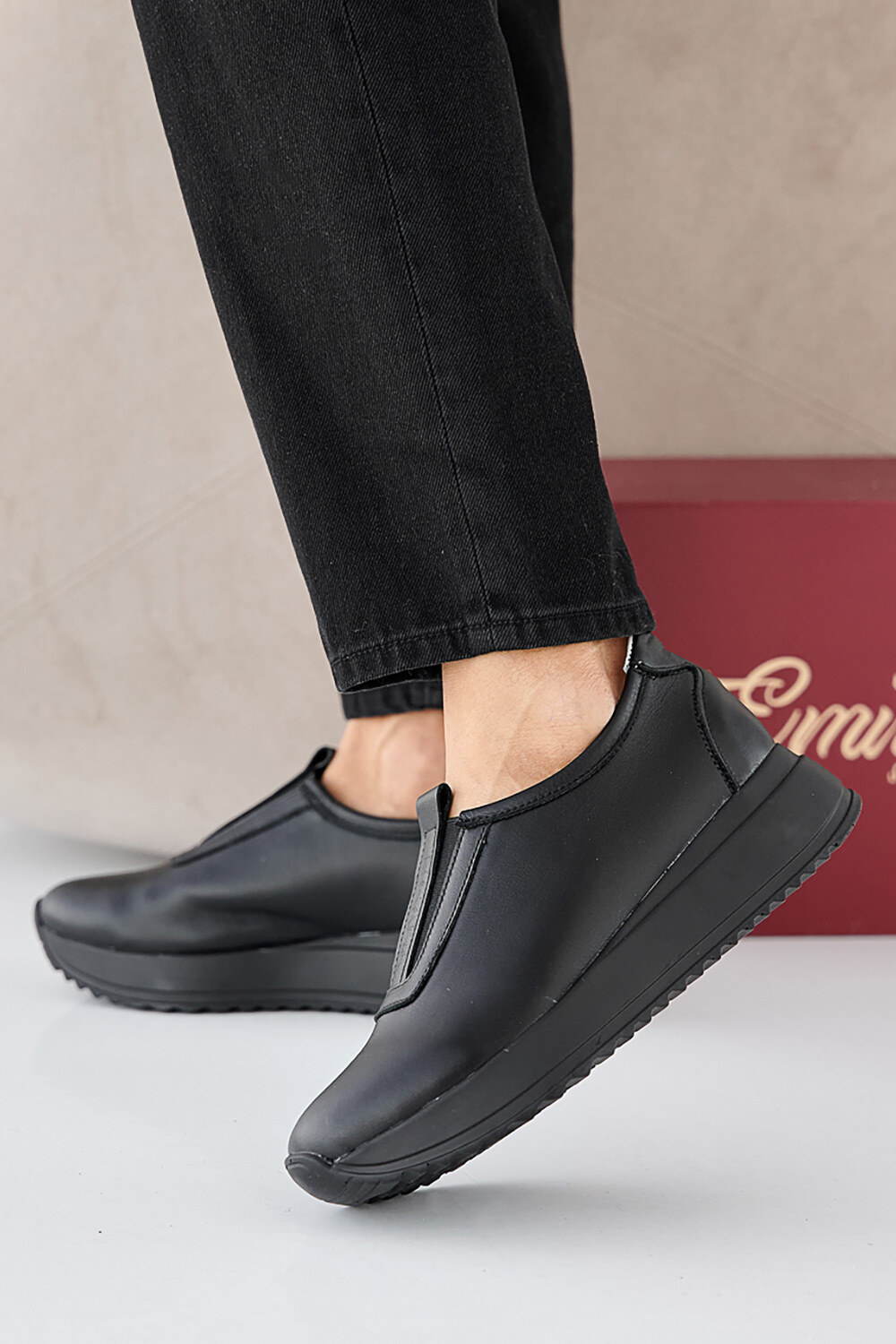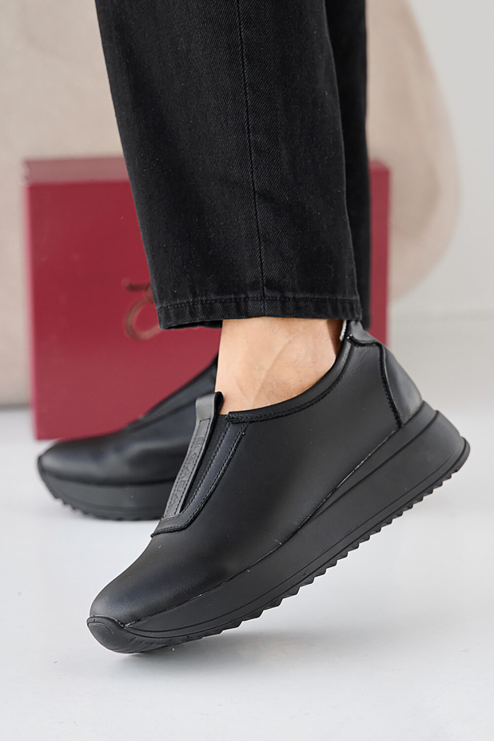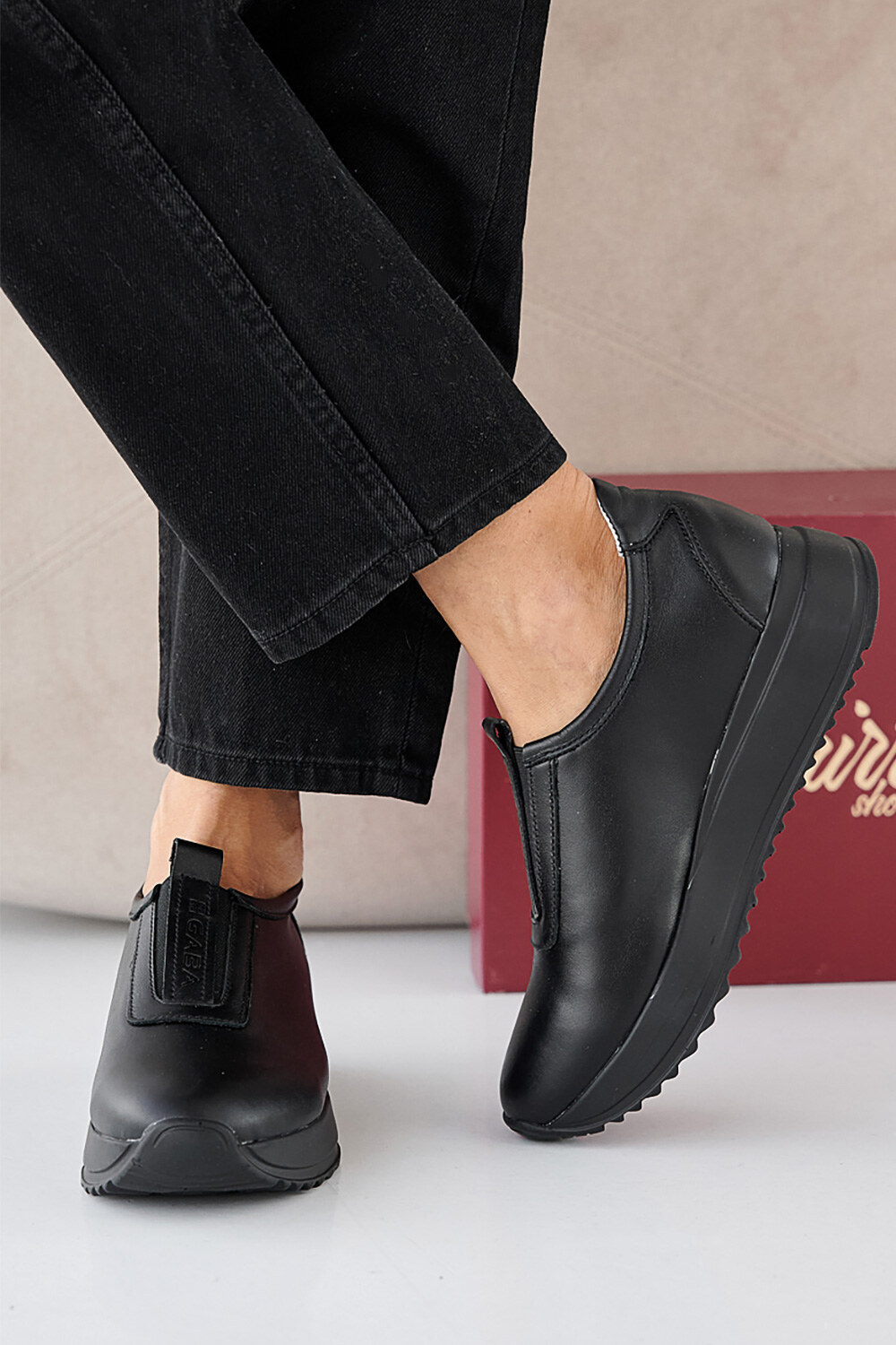 Damen-Ledersneaker Frühling-Herbst schwarz 2505331
