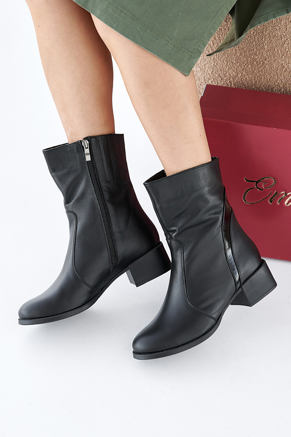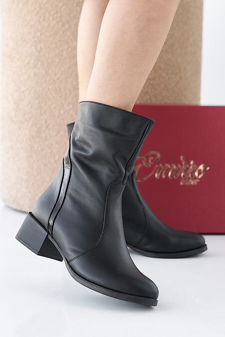 Женские ботинки кожаные весенне-осенние черные 2505408