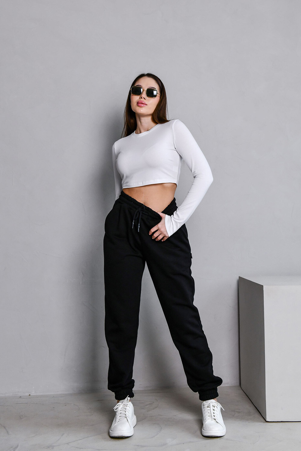 • Joggerhosen bestehen aus dickem Federstoff, lockerer Passform, mit Bündchen aus dem Hauptmaterial.