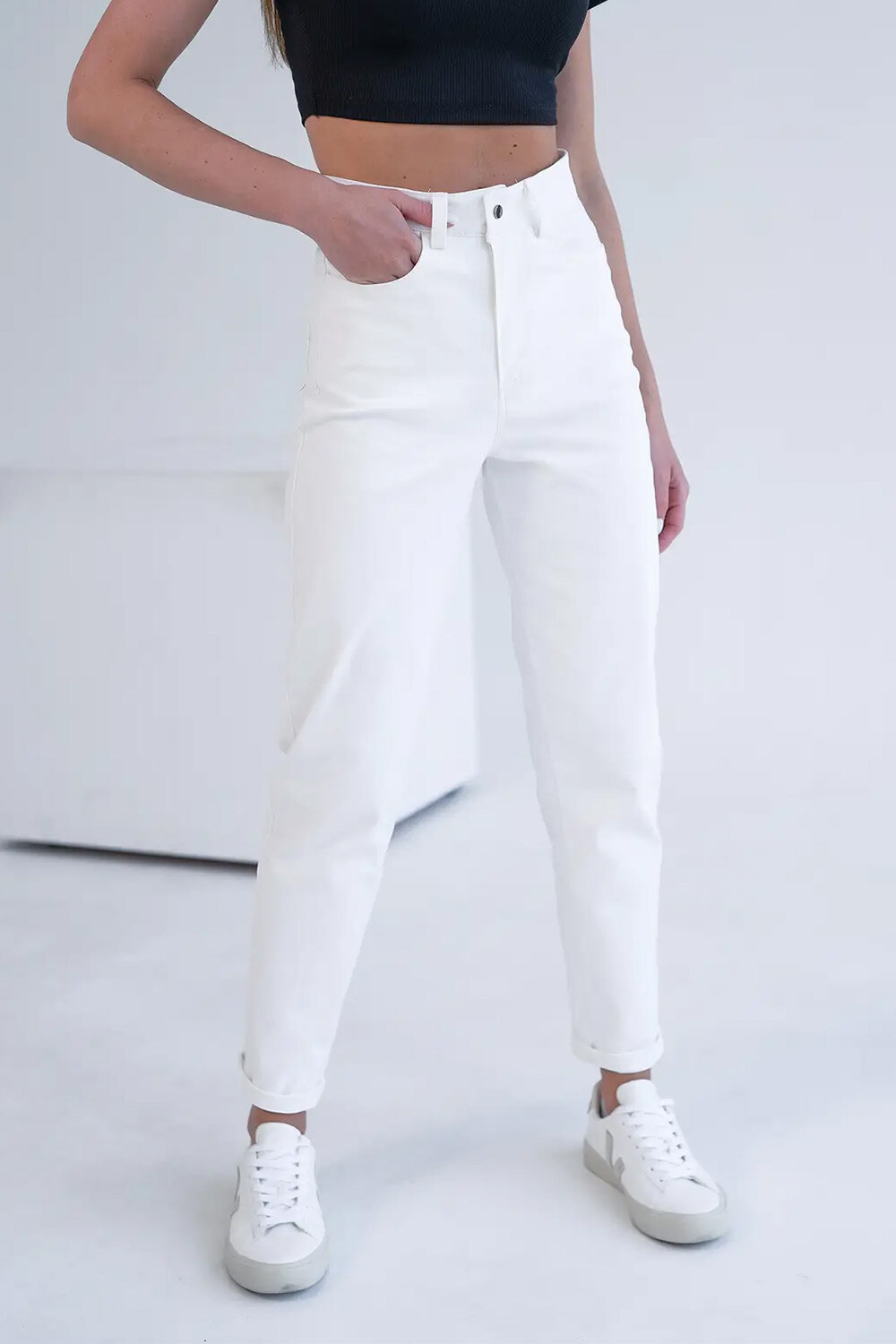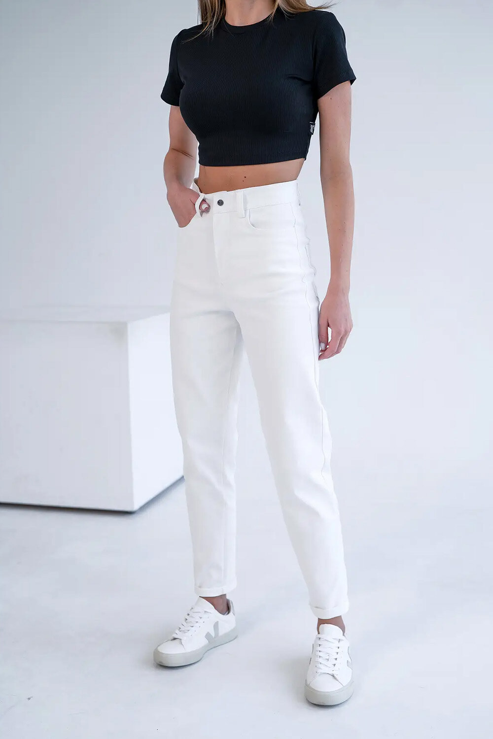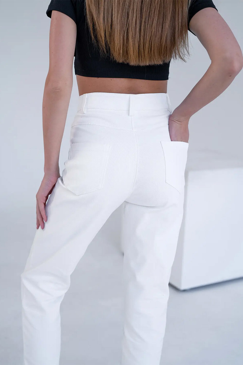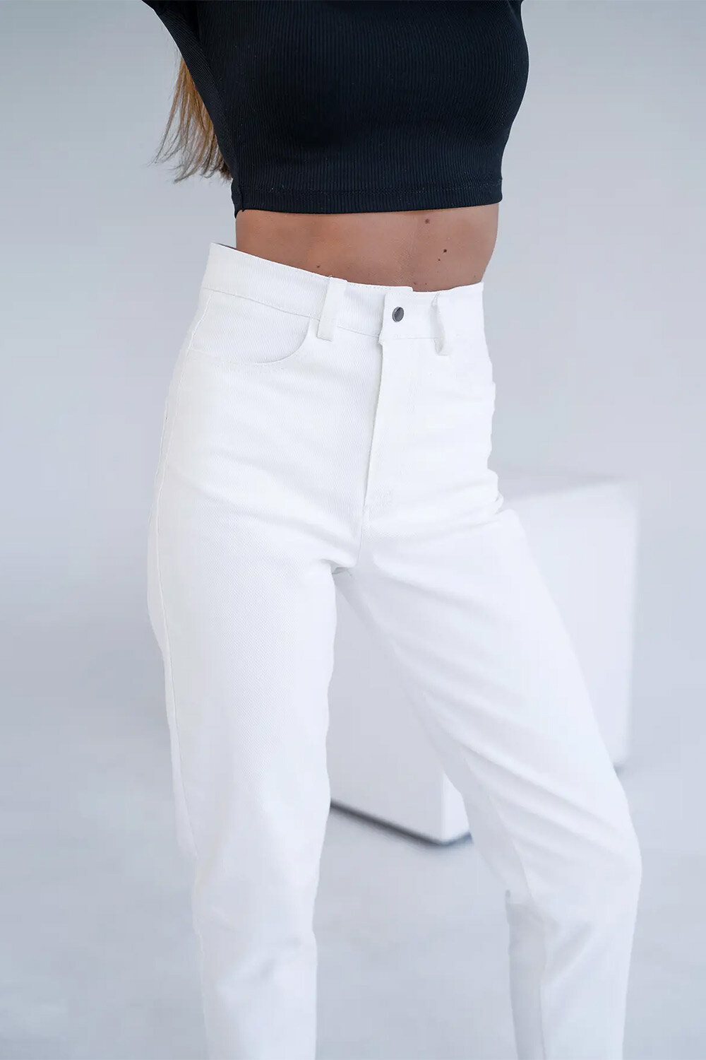 Spodnie damskie półdopasowane MOM COTON TWILL Białe Teamv 8034191