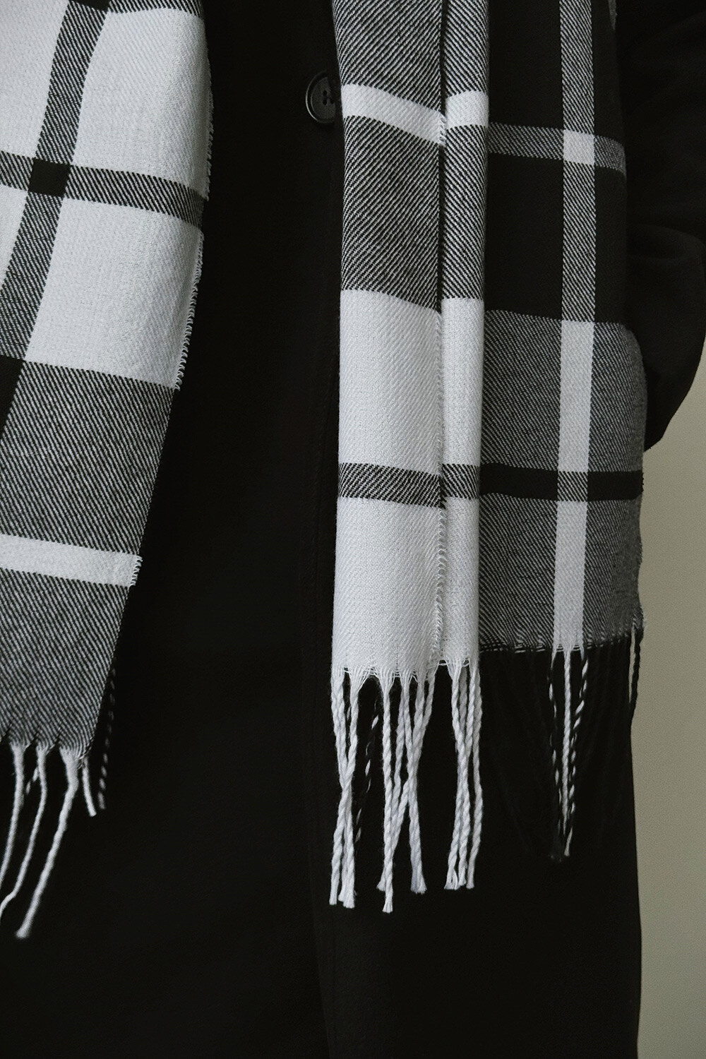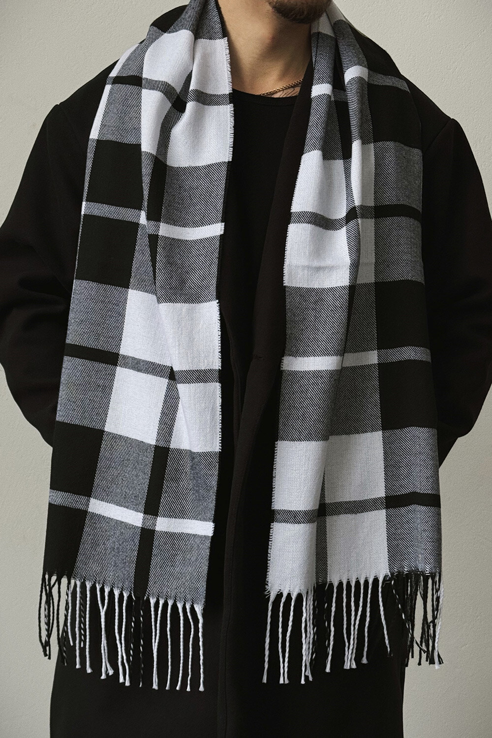 - Stilvoller schwarz-weiß karierter Schal mit klassischem Design ist eine ideale Wahl für die kalte Jahreszeit.