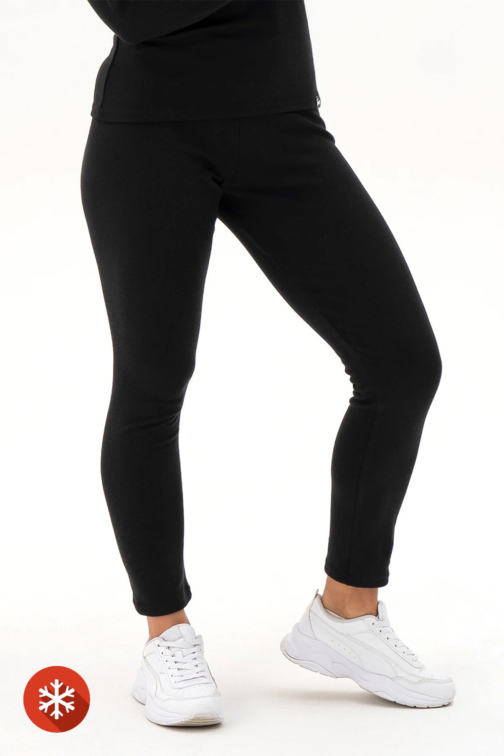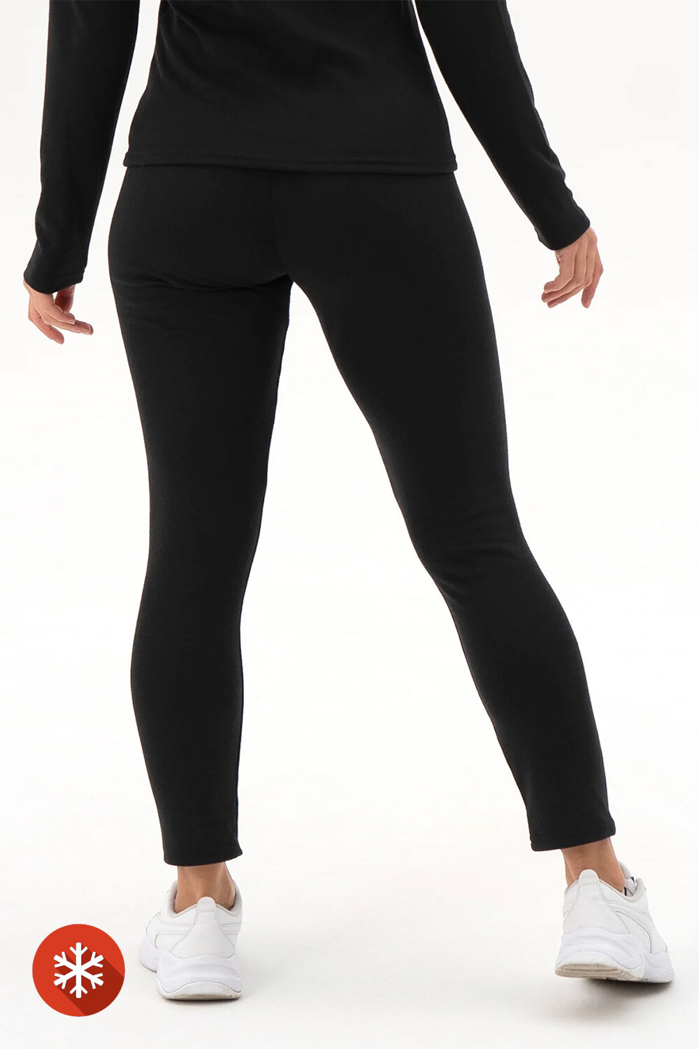 • Damenleggings aus warmem Stoff, der die Körperwärme speichert.