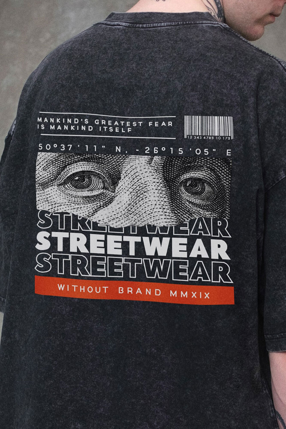 Чоловіча Виварена Оверсайз Футболка Washed З Принтом Streetwear Black Without 8049618