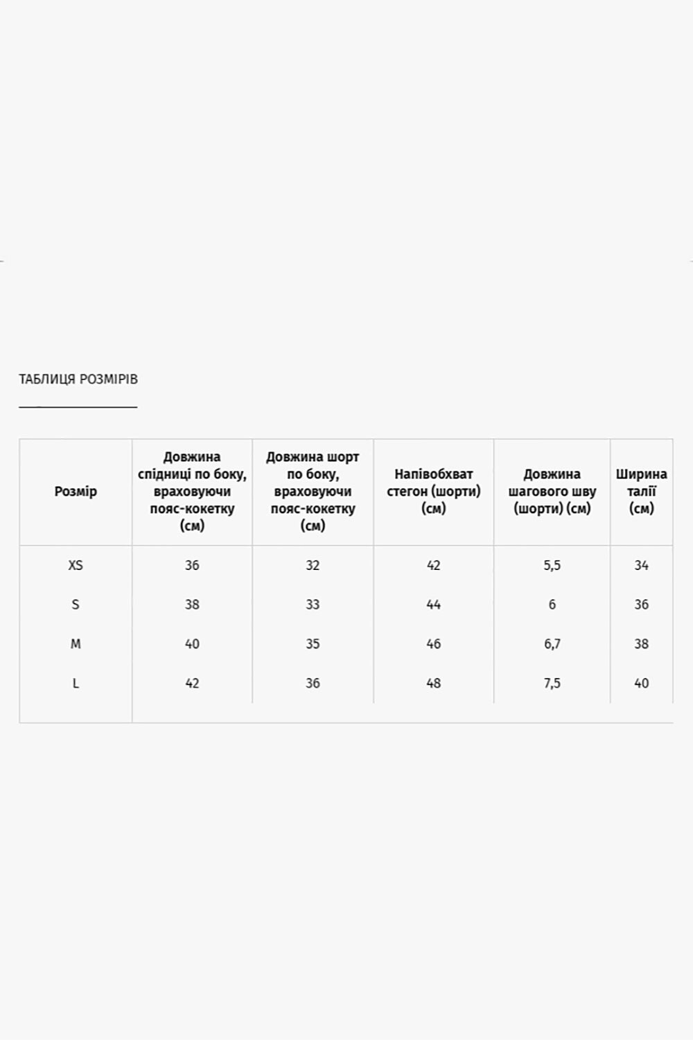 Größentabelle