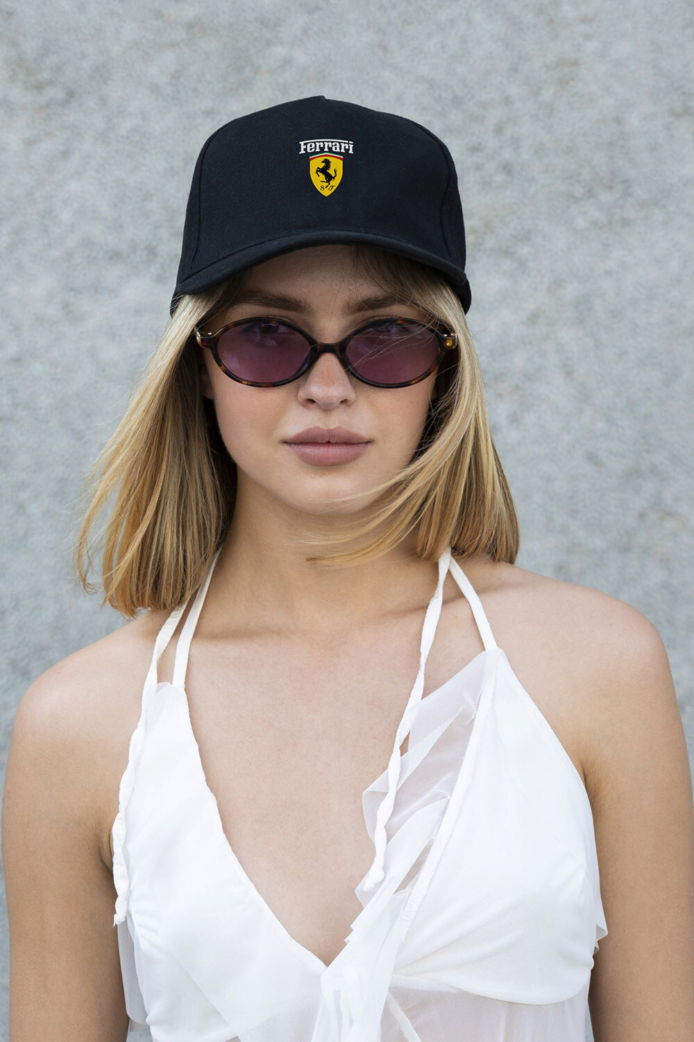 Damska czapka z daszkiem Tracker z nadrukiem Ferrari, czarna Without 8049784