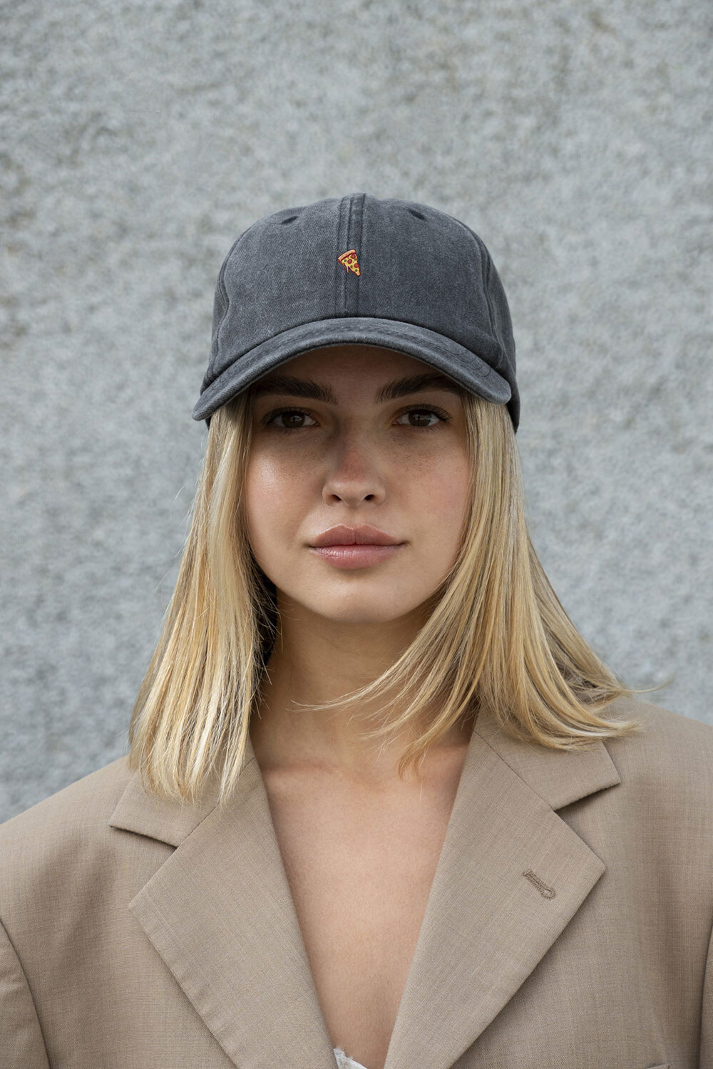 Damen Vintage Baseball Cap mit Pizza Print Schwarz Without 8049798