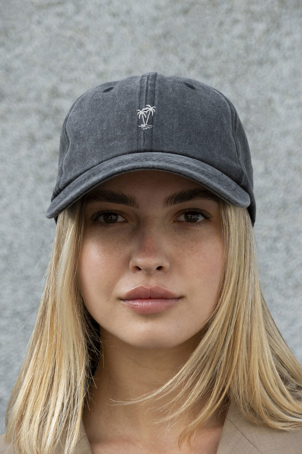Damen Vintage Baseball Cap mit Palmenprint Schwarz Without 8049802