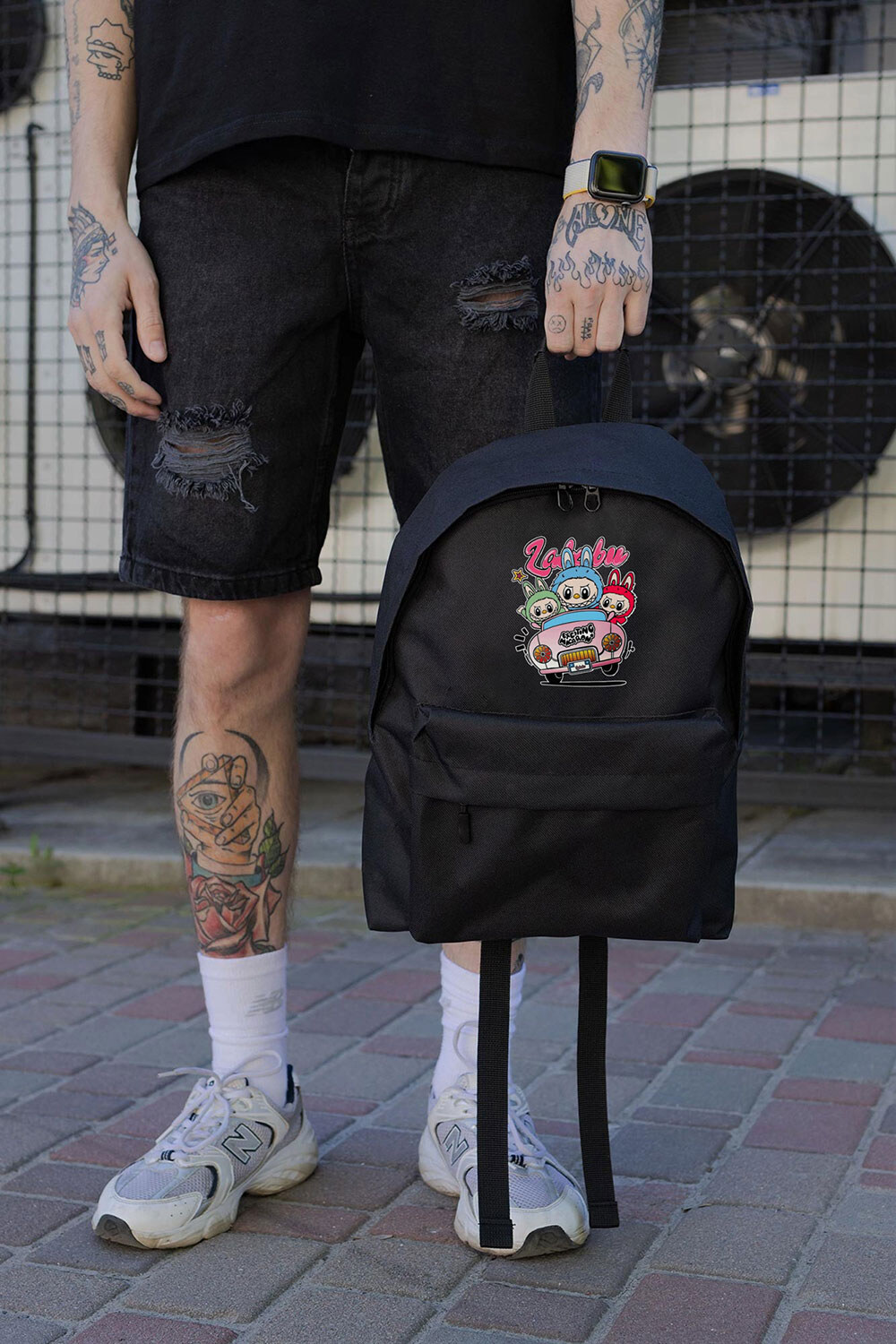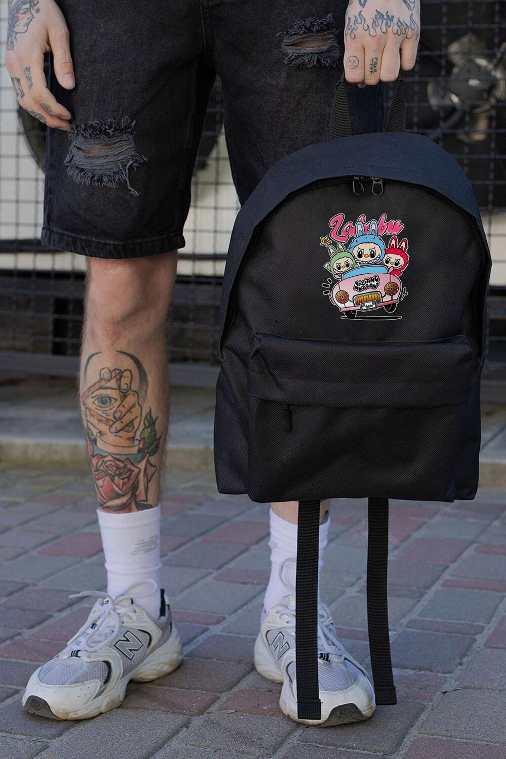 Lässiger Schulrucksack für Jungen, kompakt, mit Labubu-Print, Schwarz Without 8055308