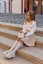 Beige Kniestrümpfe für Kinder mit Schleife und Strass M-SOCKS 2040335