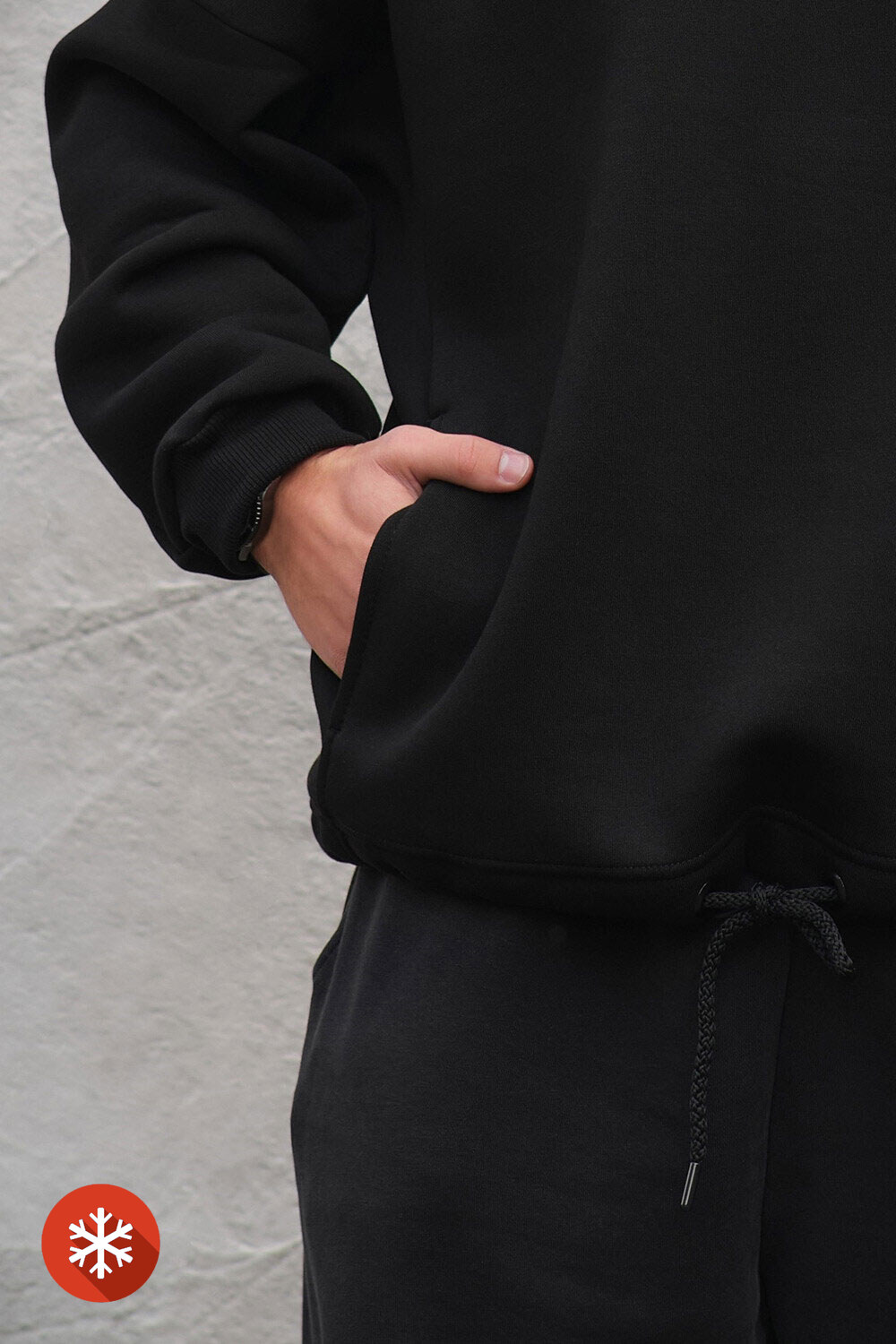 - Schwarzer Oversize-Hoodie mit leuchtendem Print - eine stylische und bequeme Lösung für jeden Tag.