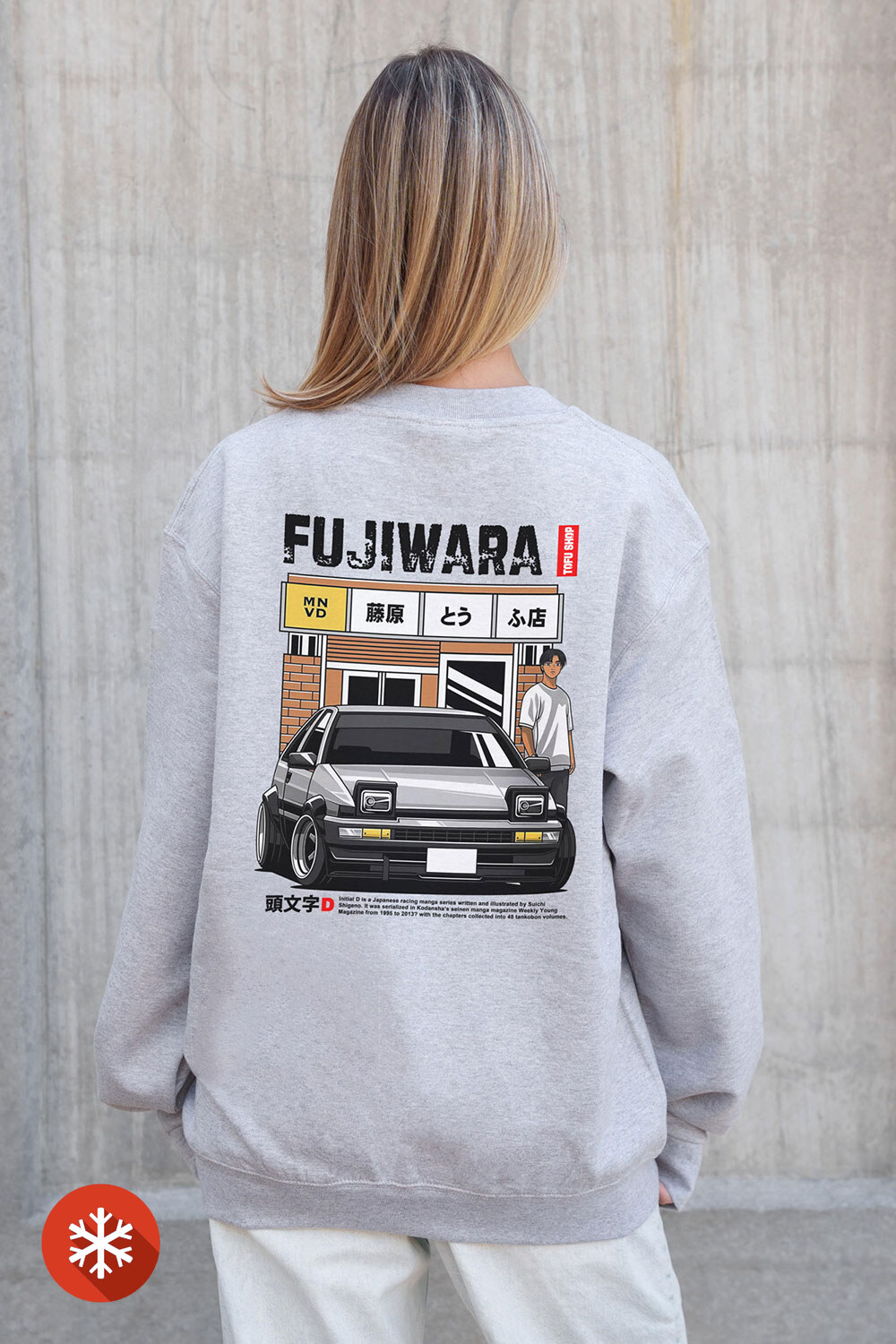 Женский Утепленный Оверсайз Свитшот На Флисе С Принтом Fujiwara Gray Without 8055721