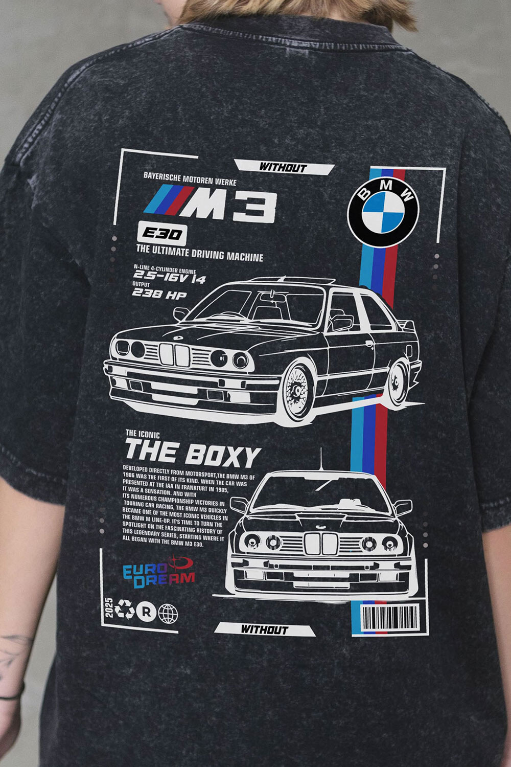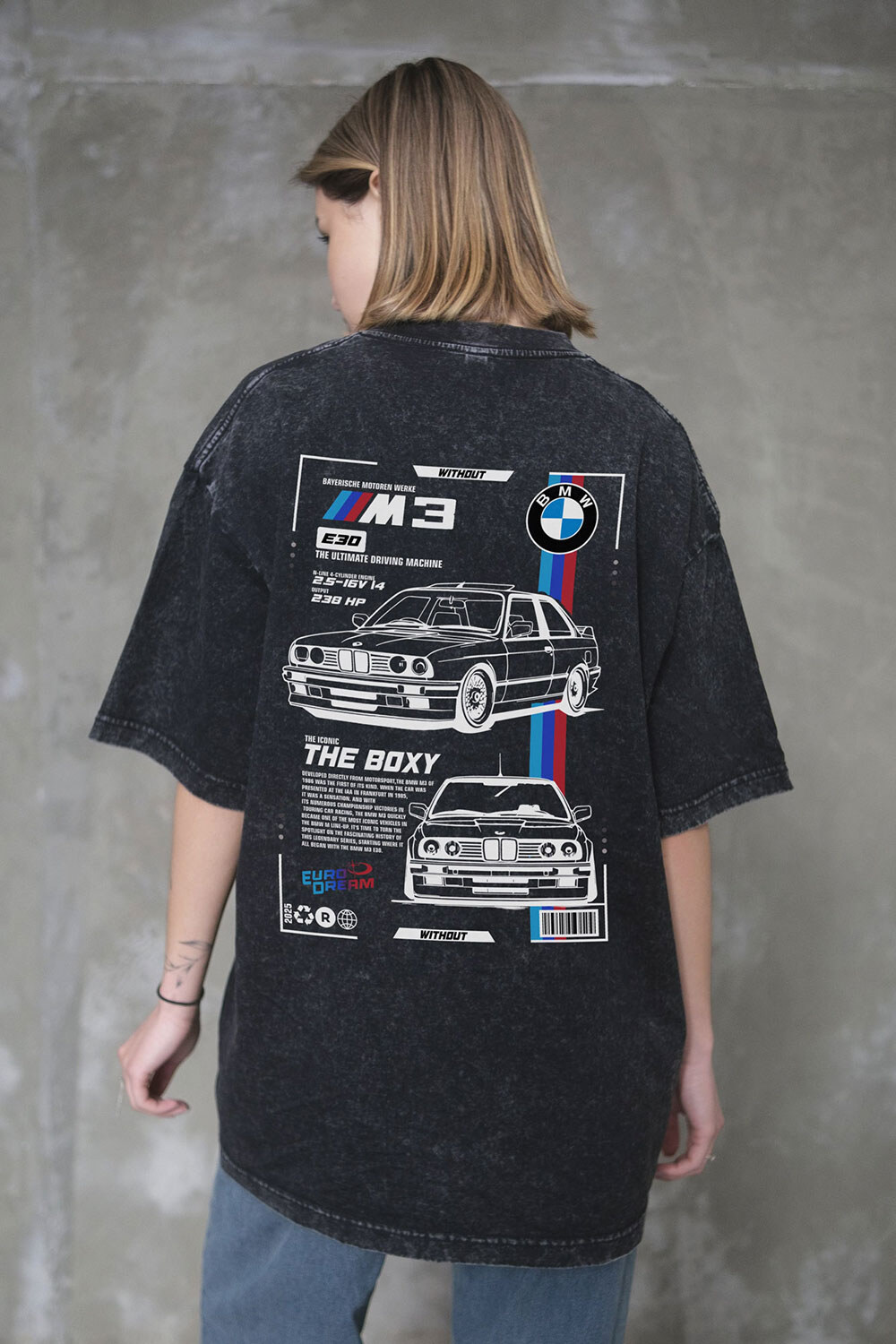 Женская Вываренная Оверсайз Футболка Washed С Принтом BMW Black Without 8056131