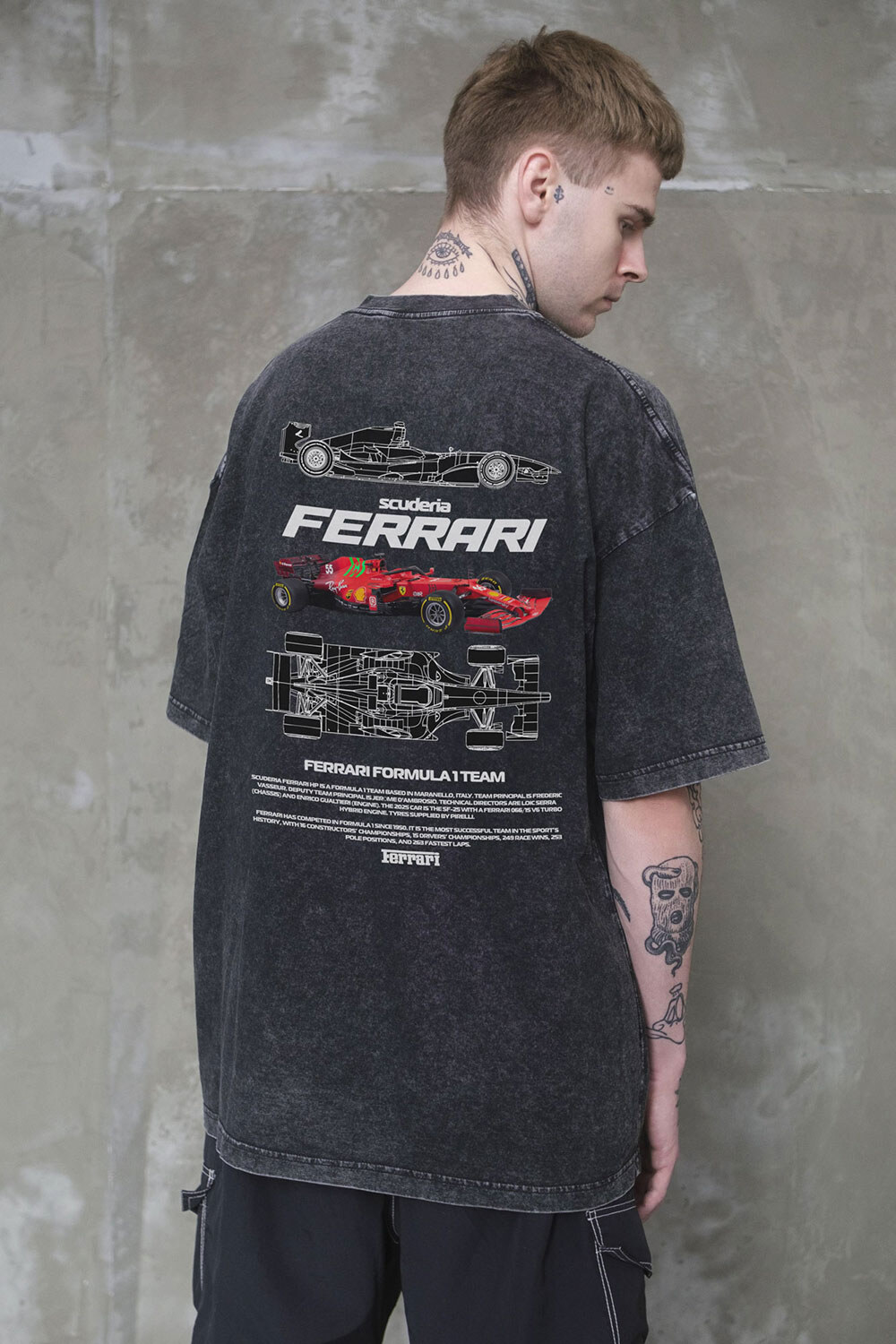 Мужская Вываренная Оверсайз Футболка Washed С Принтом Ferrari Black Without 8056142