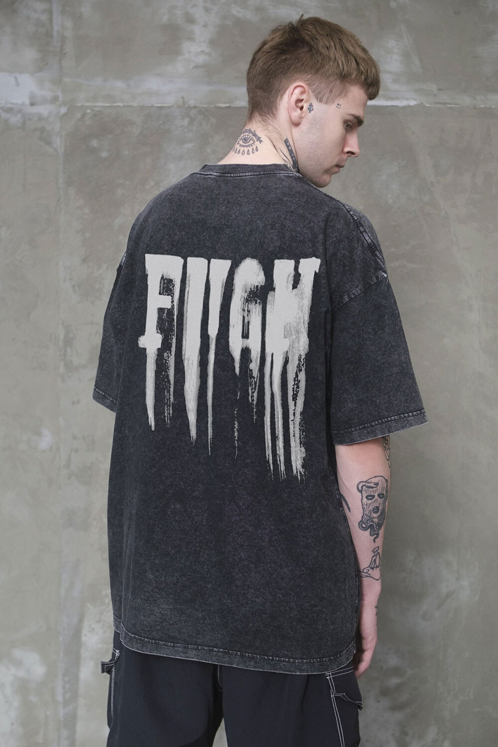 Мужская Вываренная Оверсайз Футболка Washed С Принтом Fight Black Without 8056144