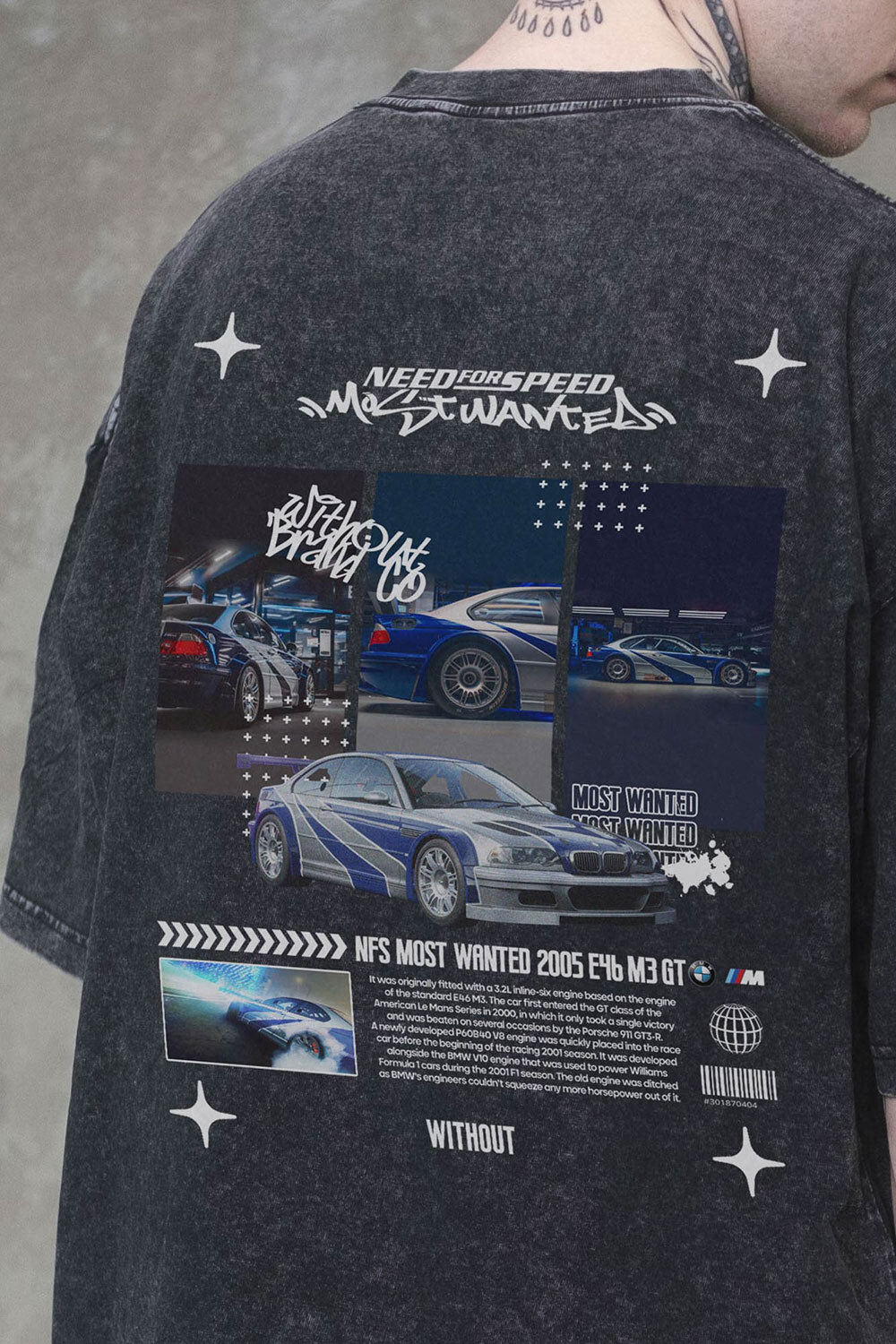 Мужская вываренная оверсайз футболка Washed с принтом Wanted Black Without 8056166