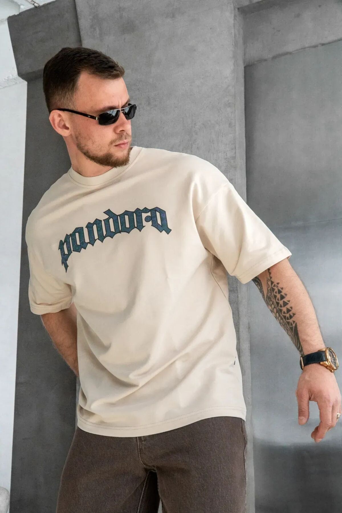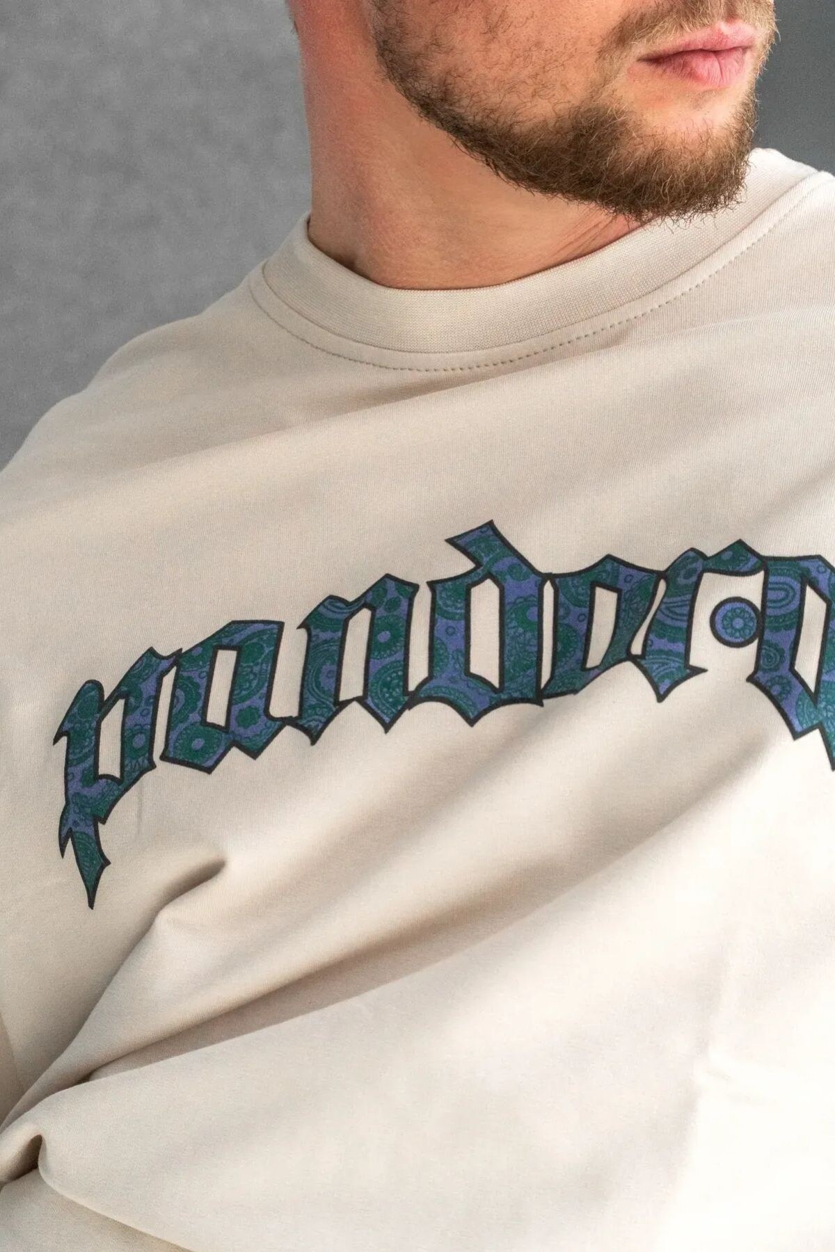 Męska luźna koszulka z nadrukiem PANDORA w kolorze beżowym Teamv 8034492