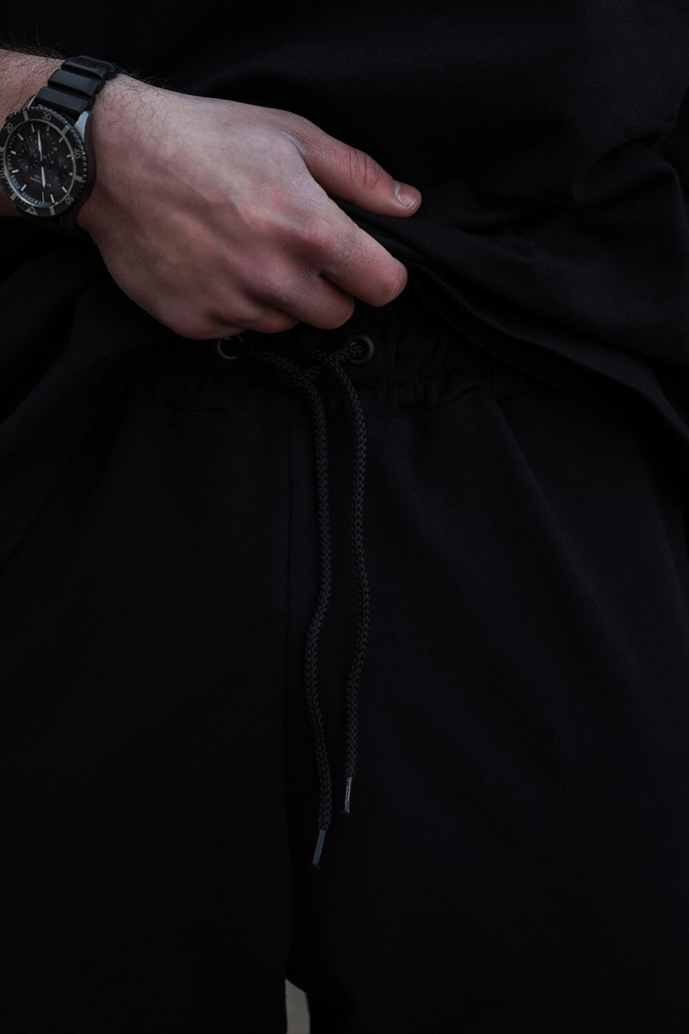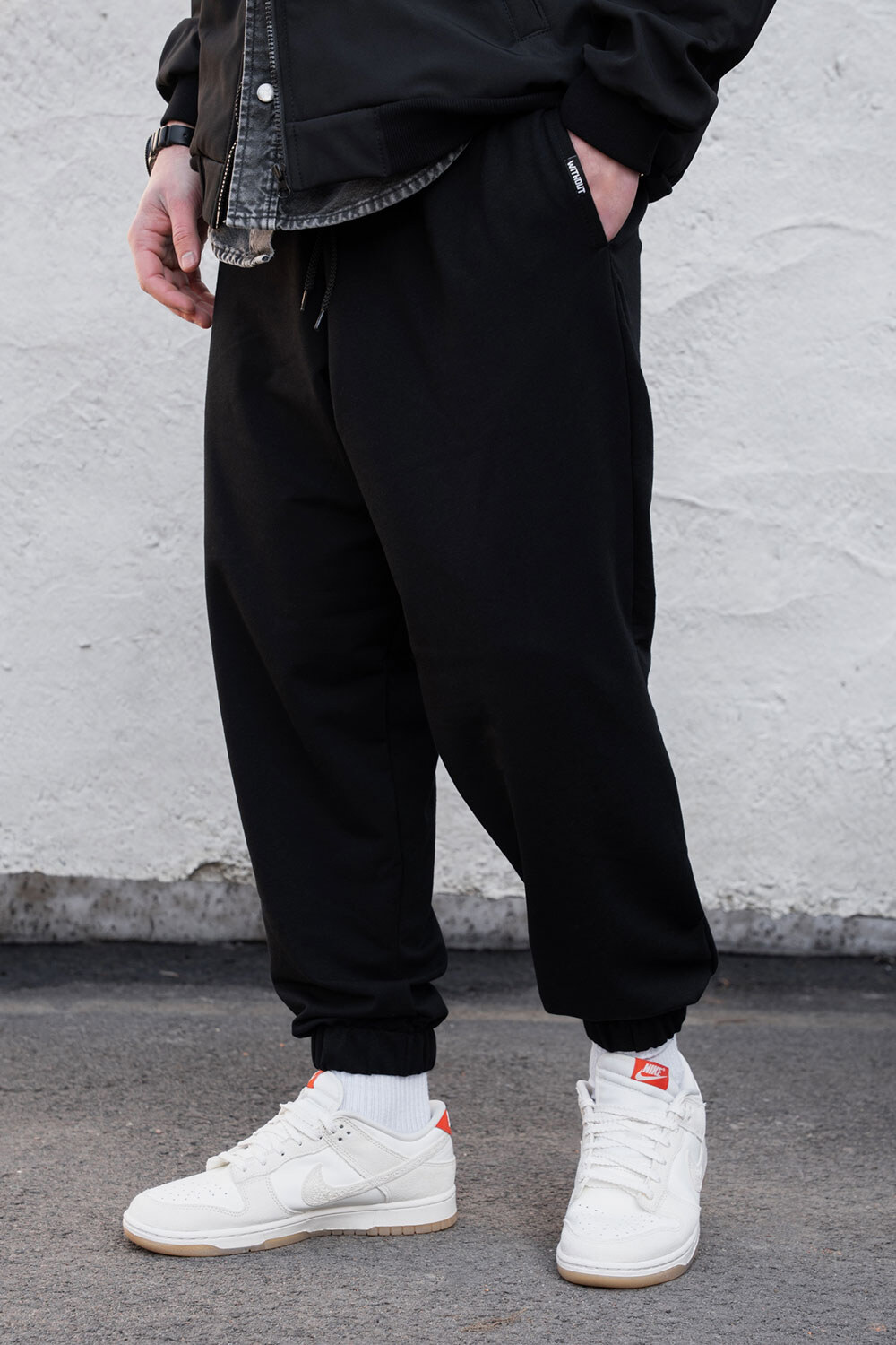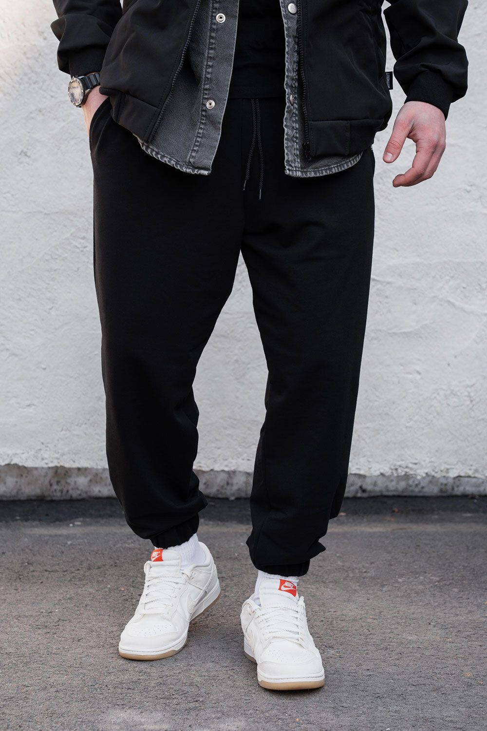Męskie lekkie, dzianinowe spodnie sportowe na pół sezonu Runer Black Without 8056168