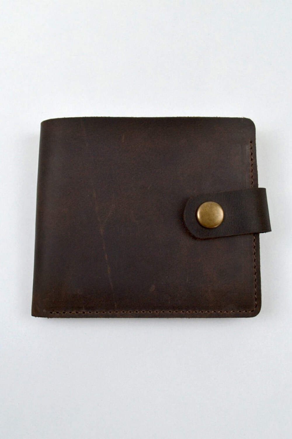 Чоловічий шкіряний гаманець на кнопці в коричневому кольорі 8046163