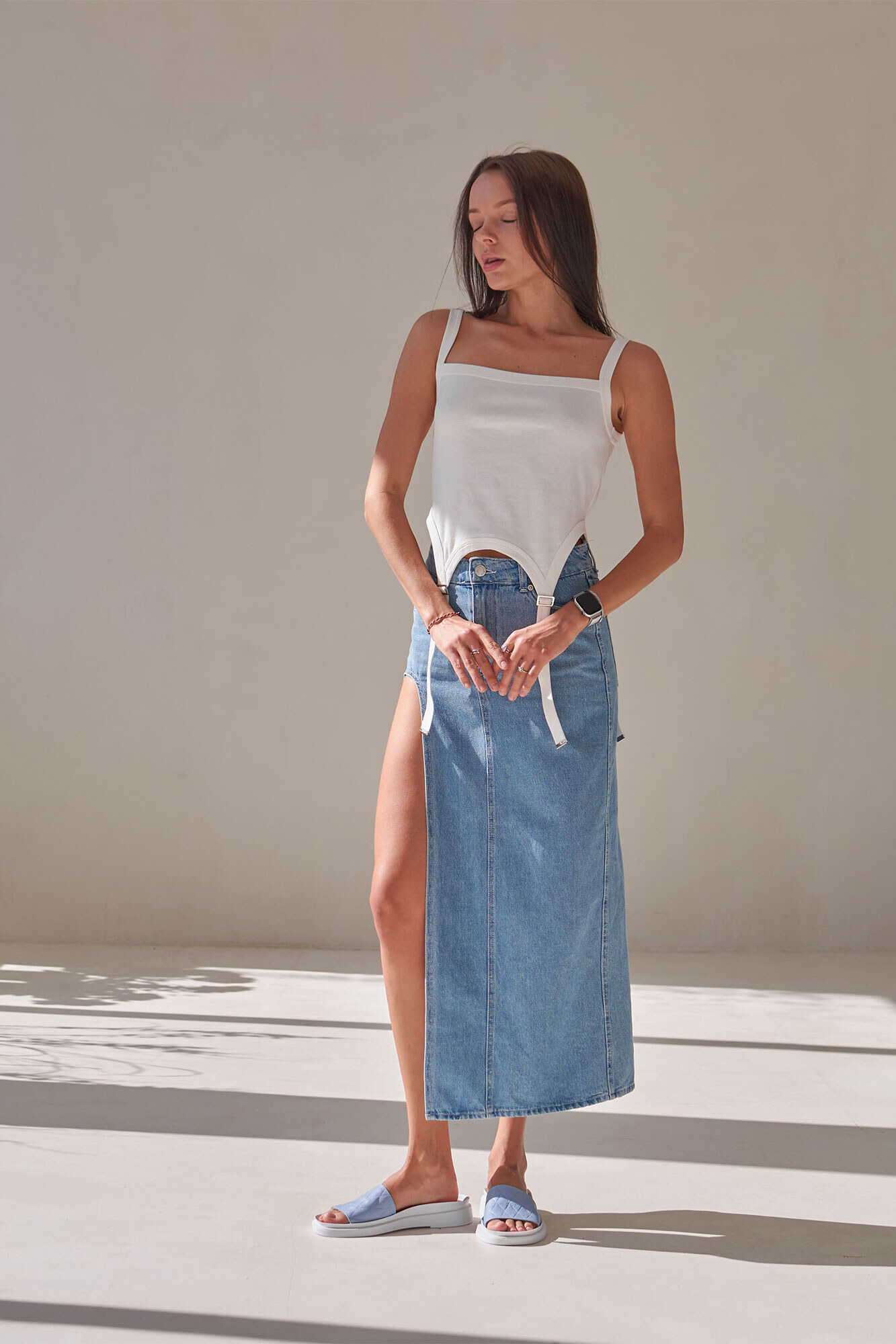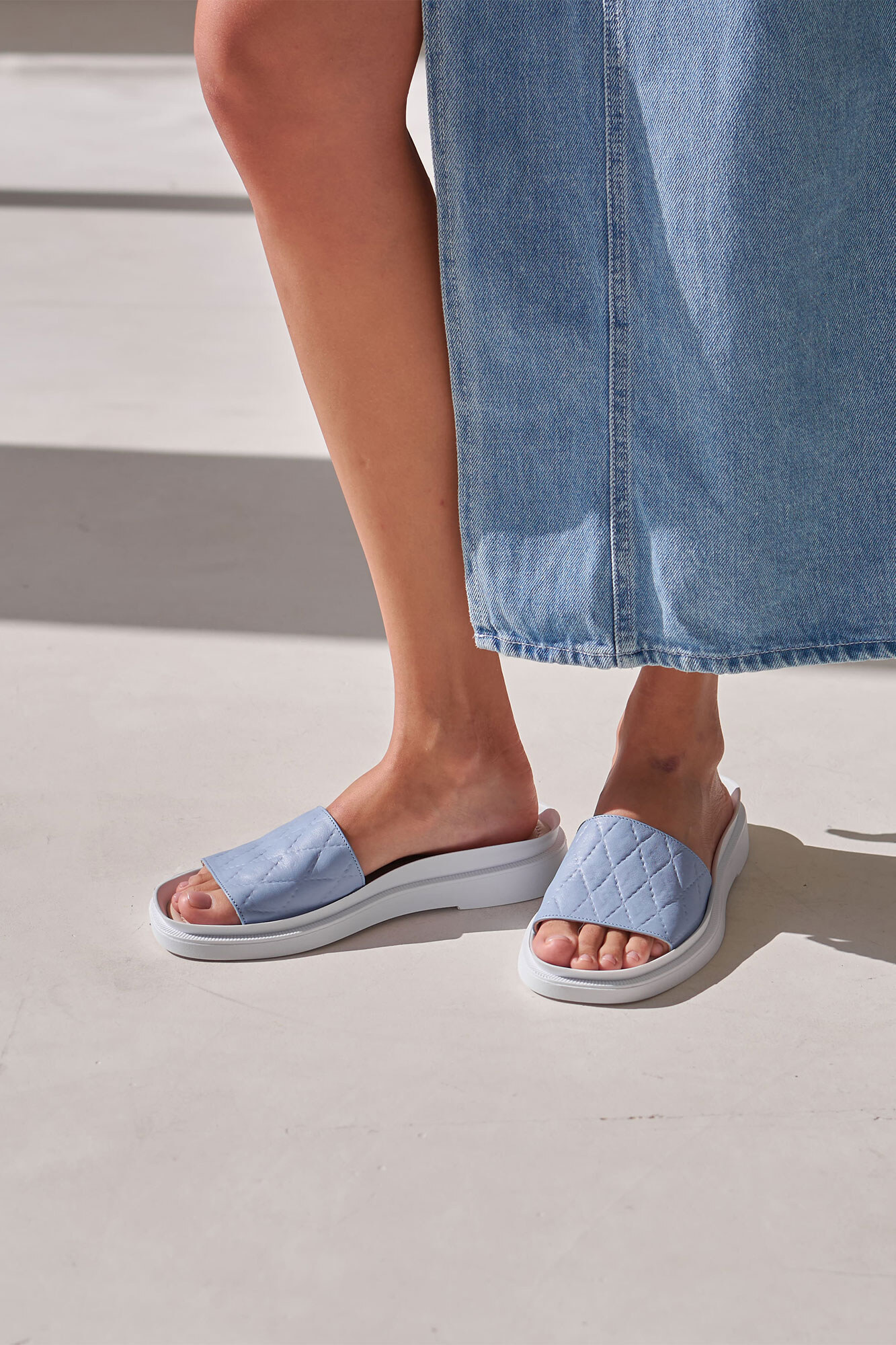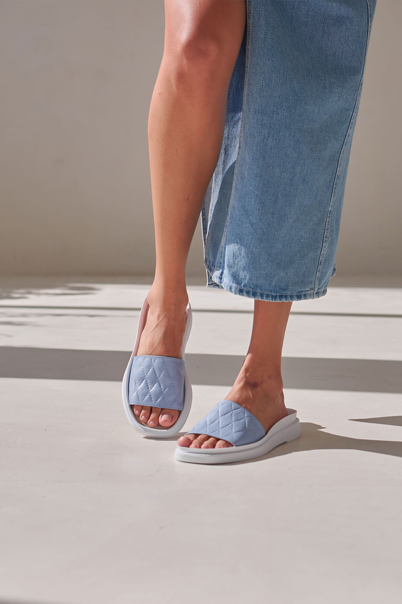 Women's leather flip-flops of blue color 4206112