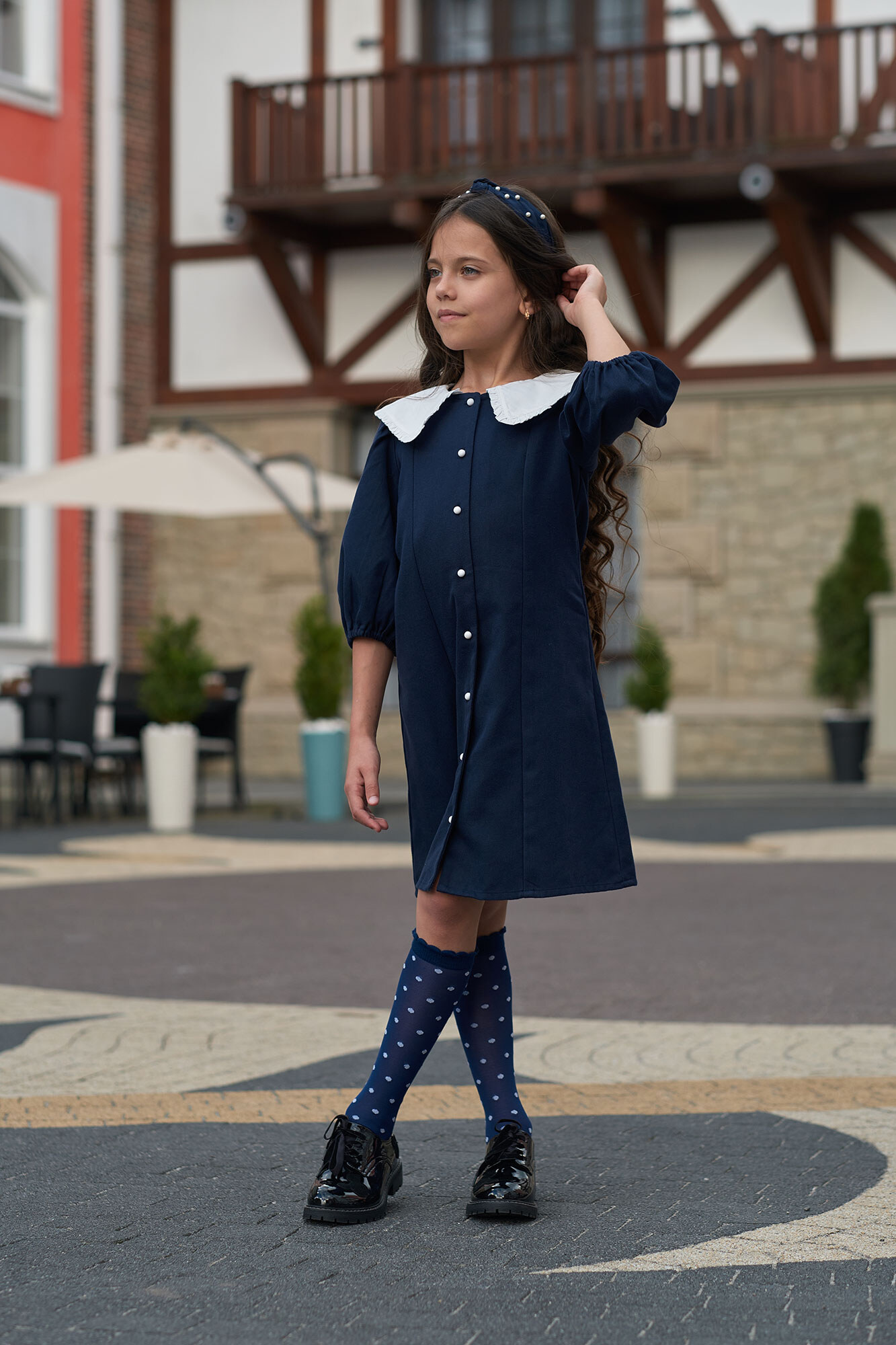 Dunkelblaue, durchscheinende Kniestrümpfe für Kinder mit weißen Punkten M-SOCKS 2040272
