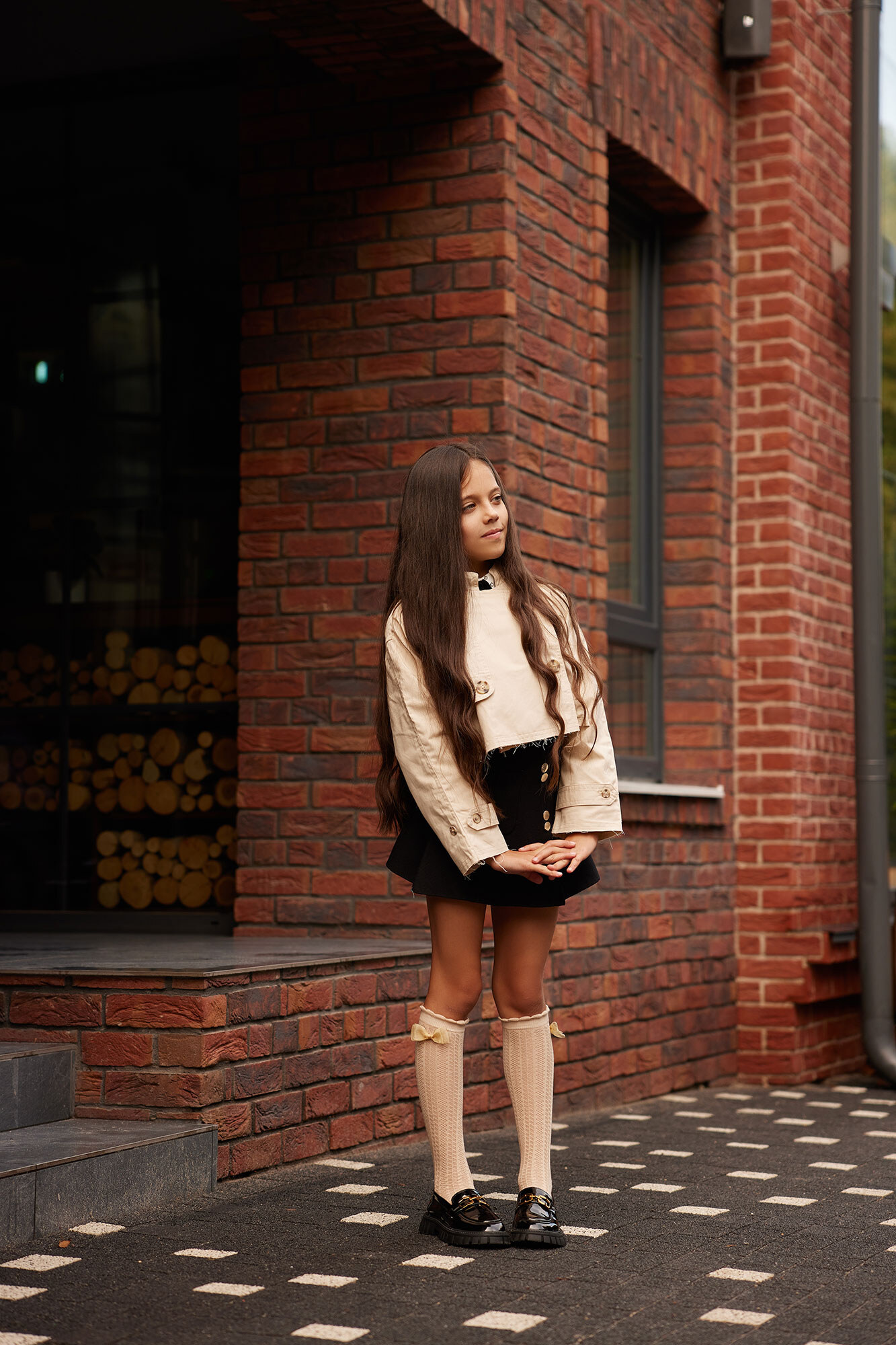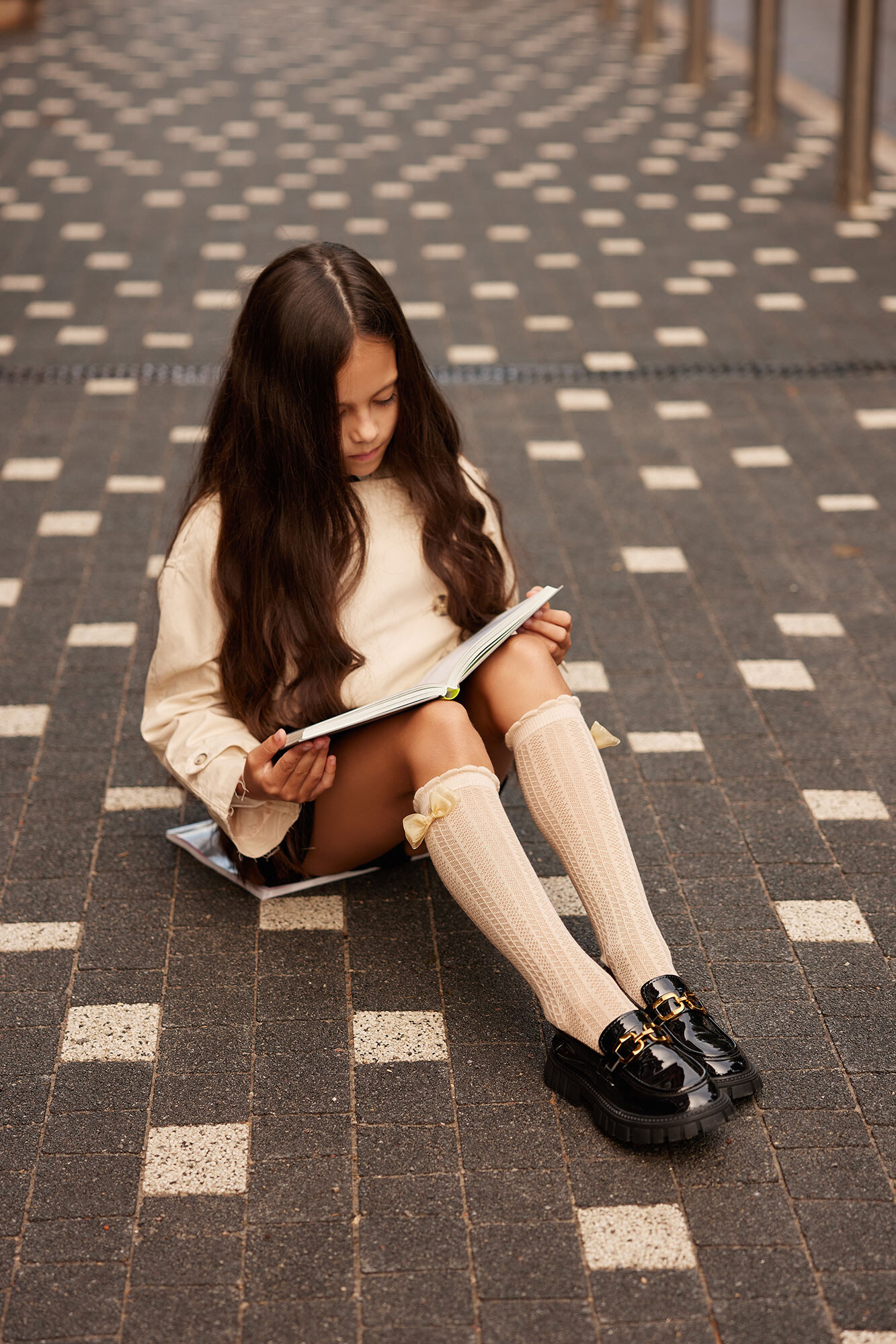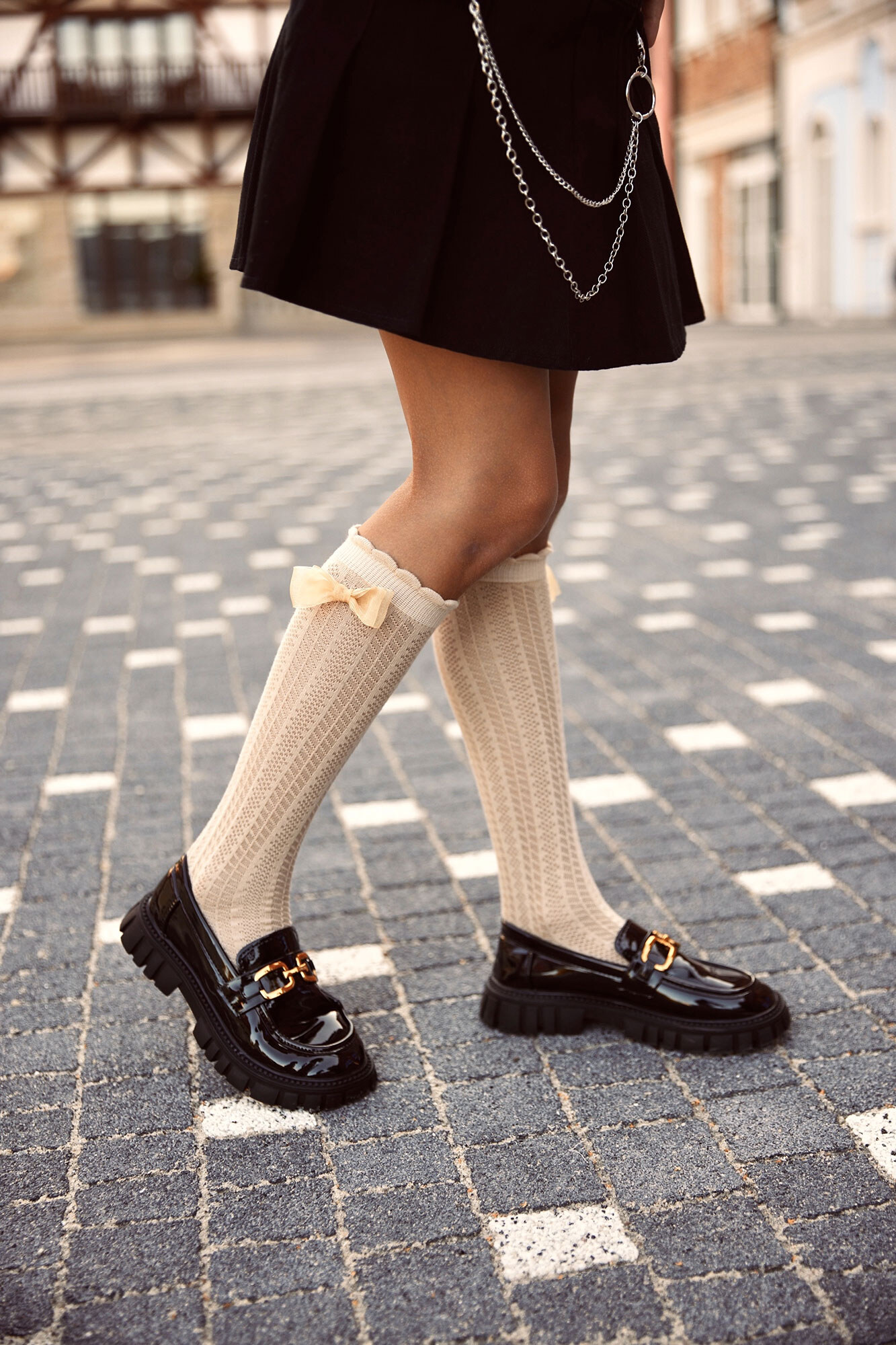 Children's beige knee-highs with a bow. M-SOCKS 2040281