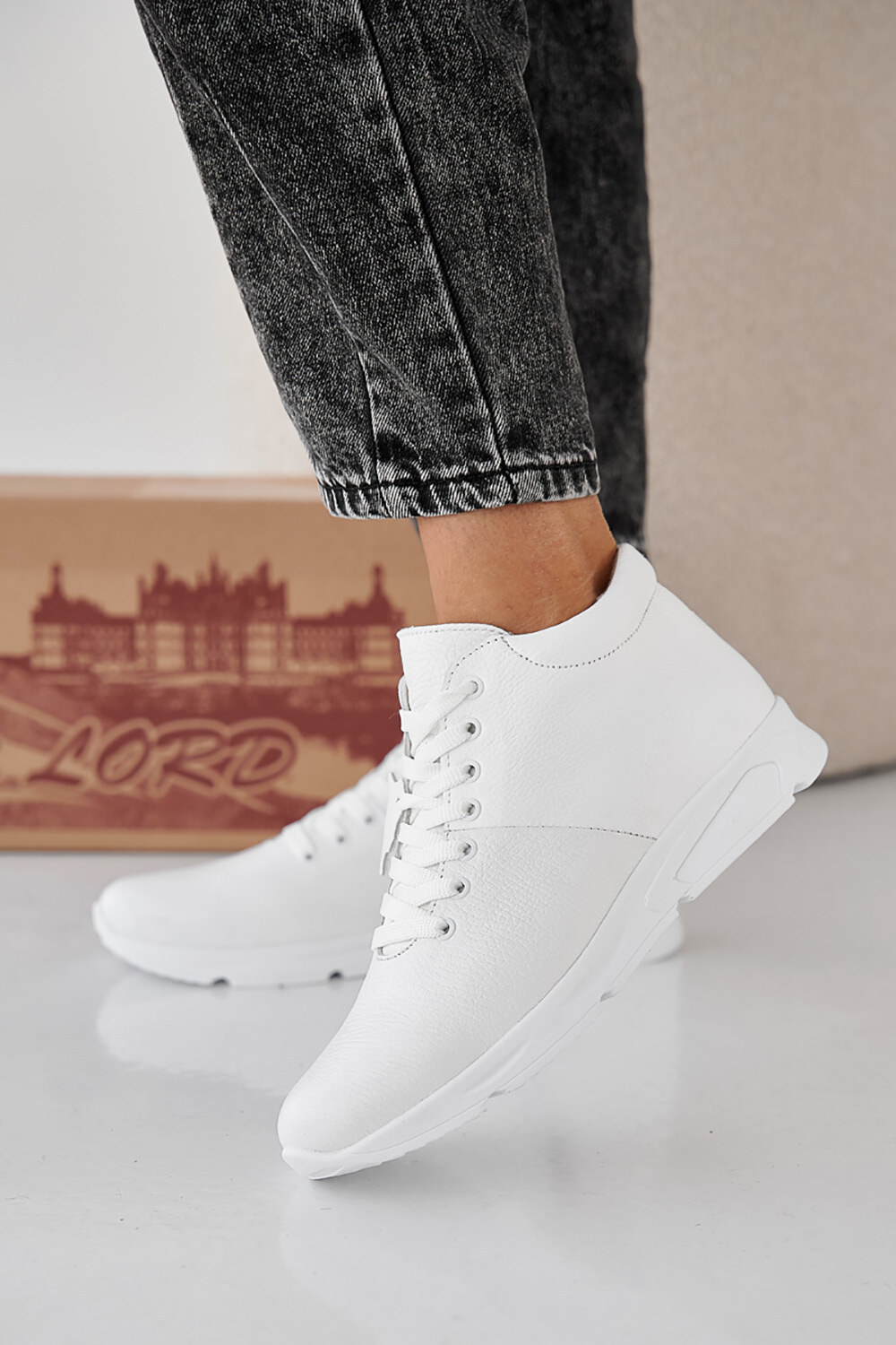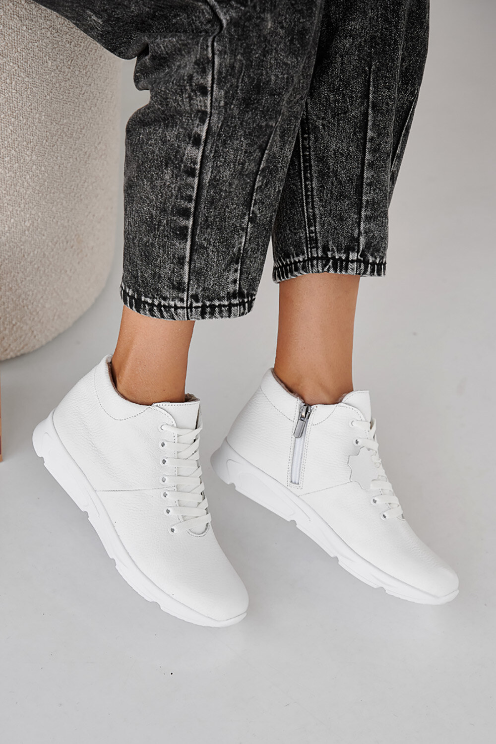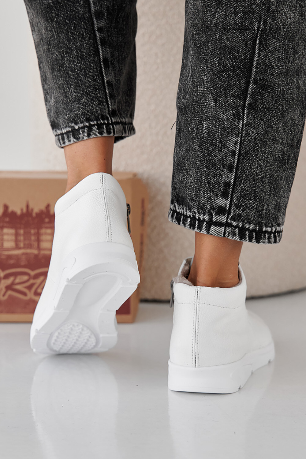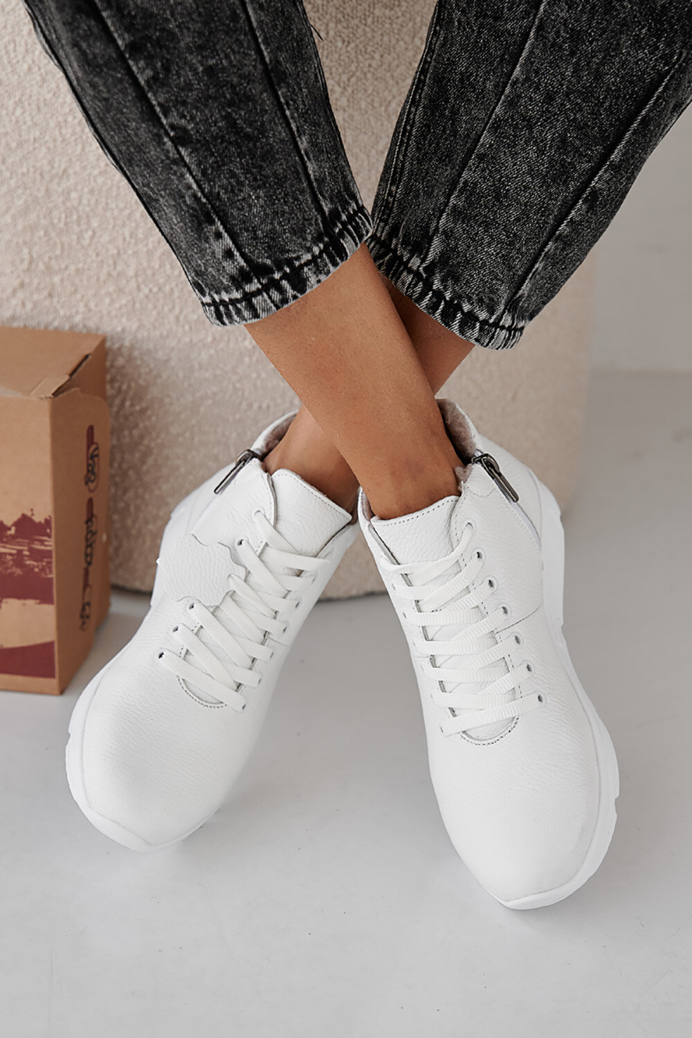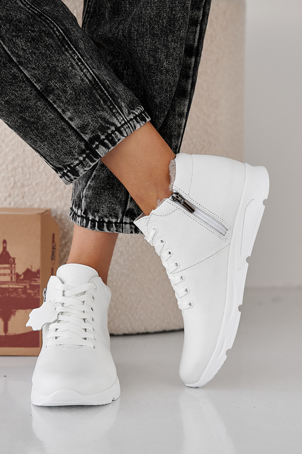 Women's white winter leather sneakers 2505429