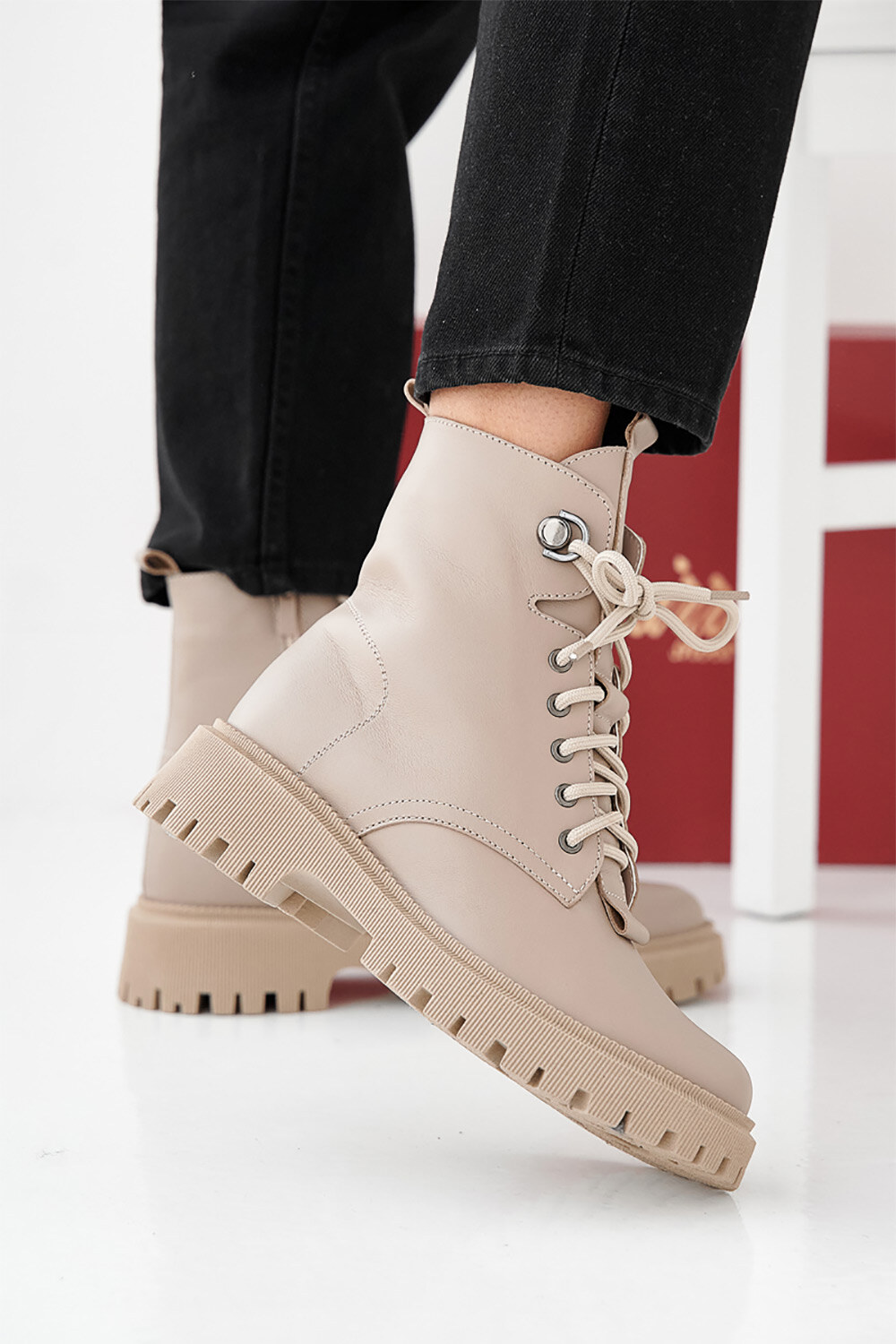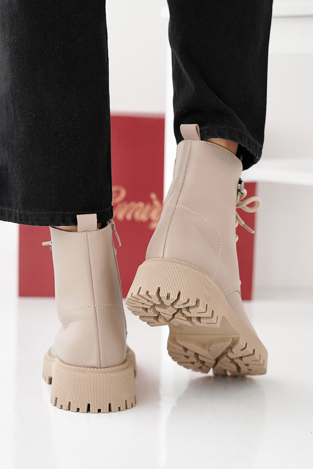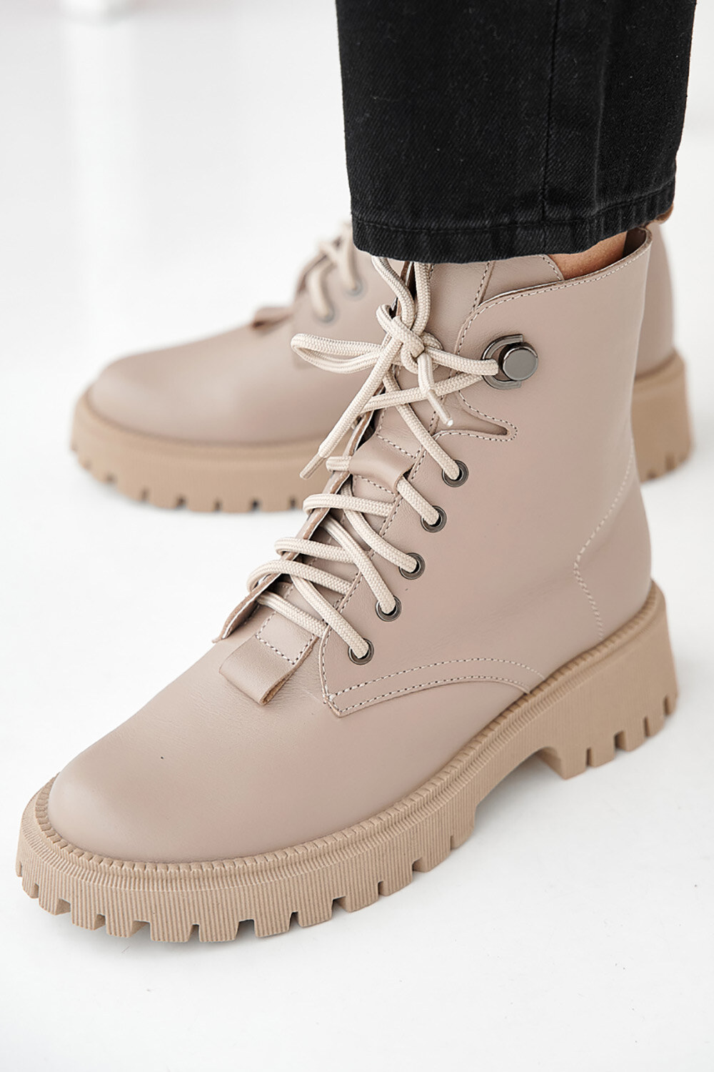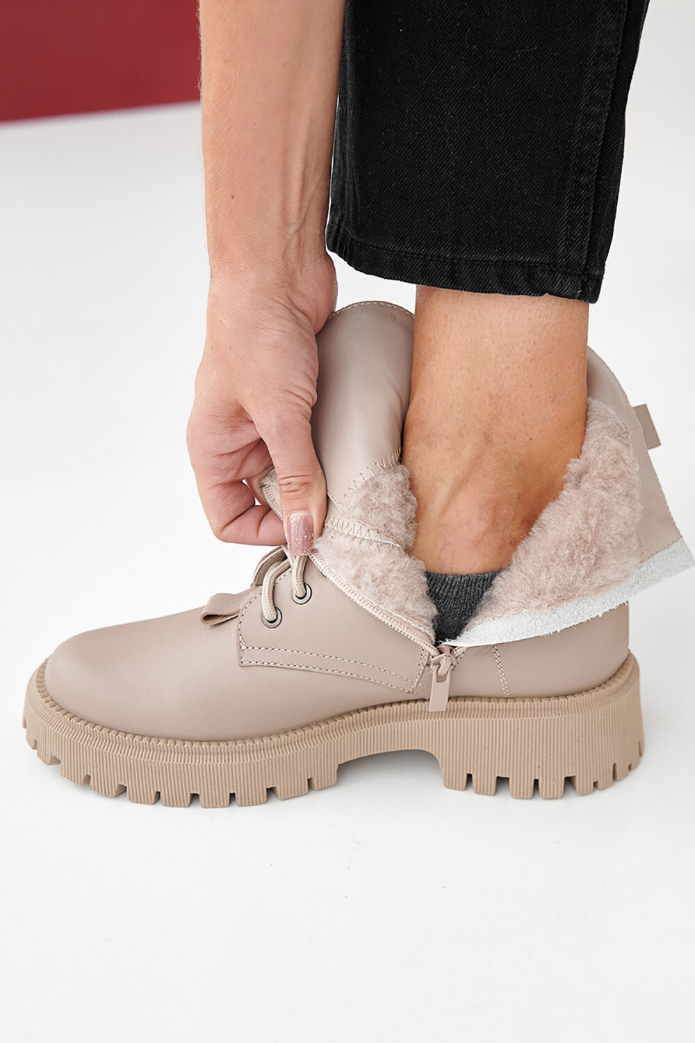 Beige Winterstiefel aus Leder mit rutschfester Sohle