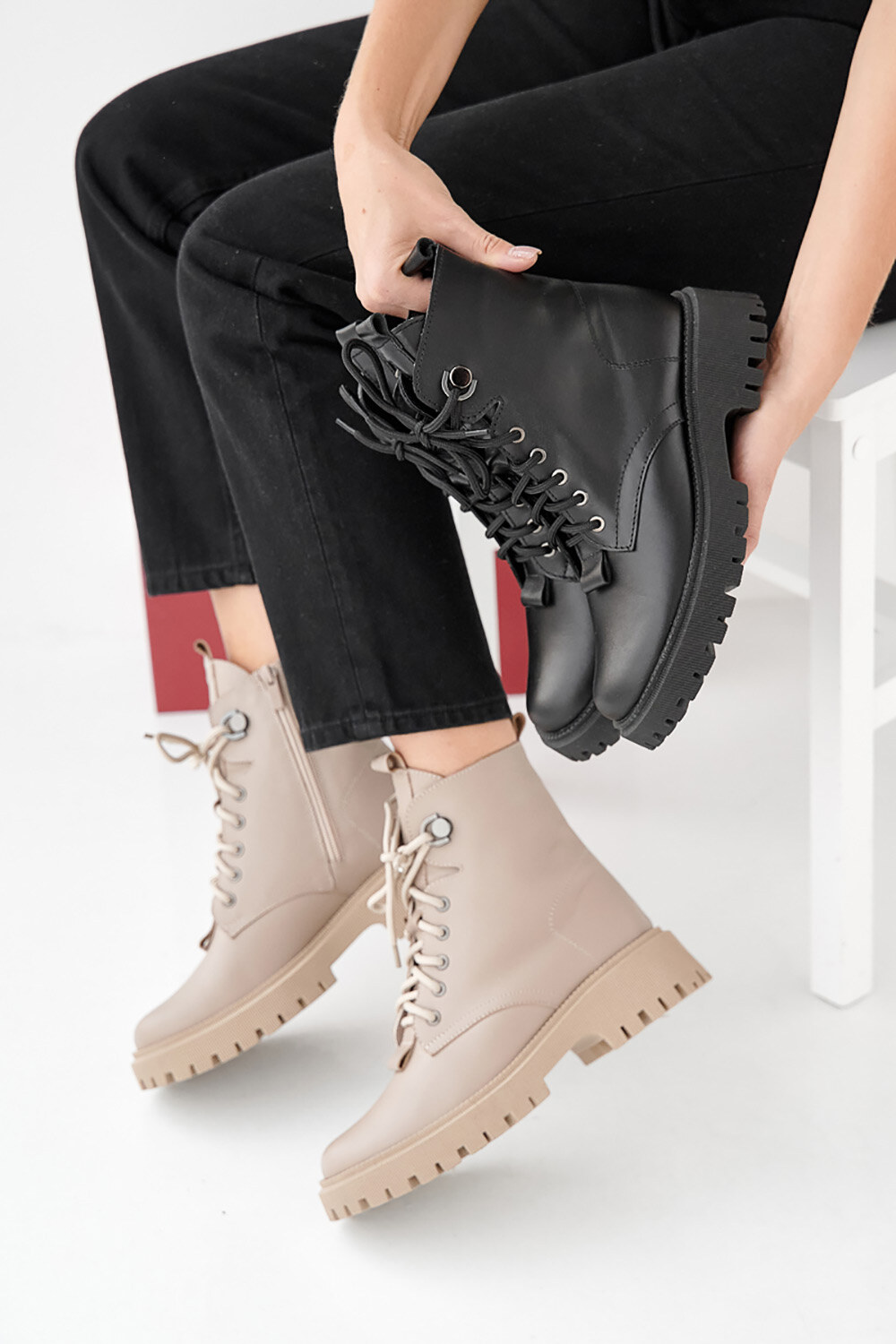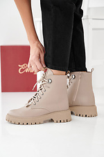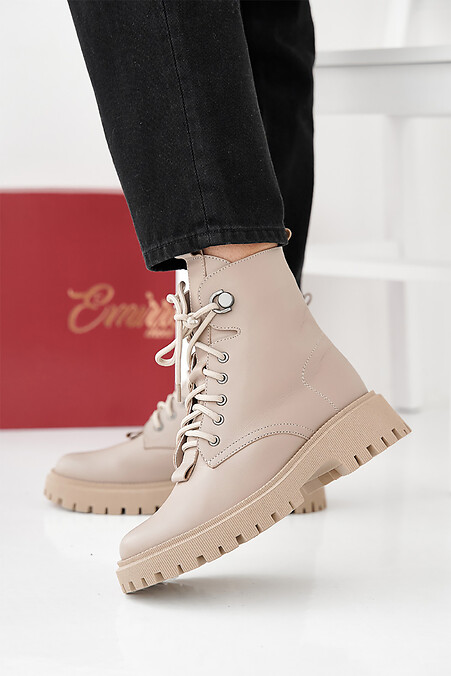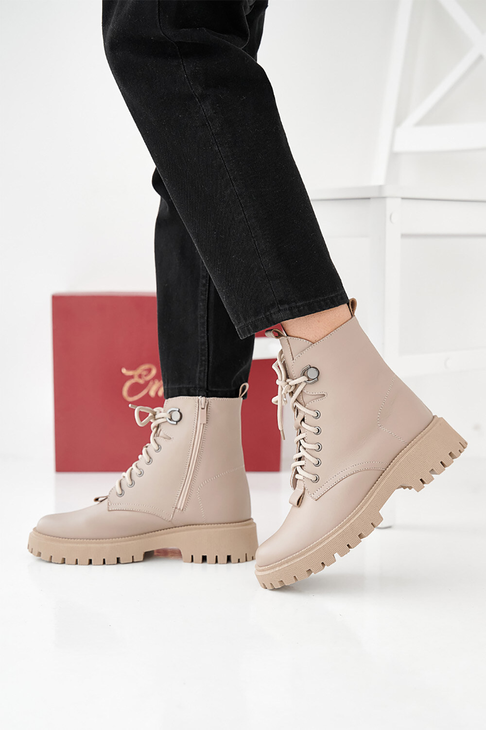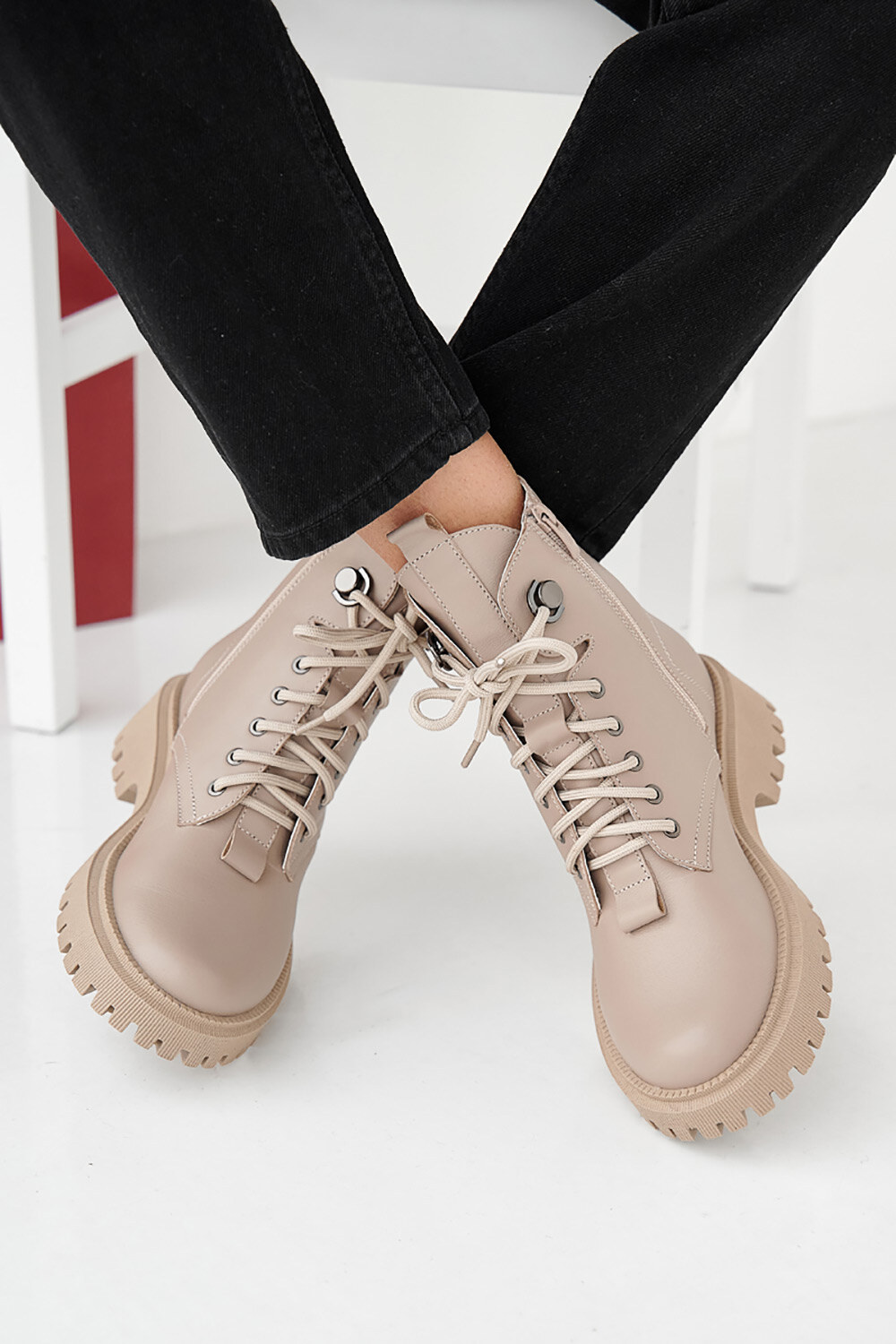 Beige Winterstiefel aus Leder mit rutschfester Sohle