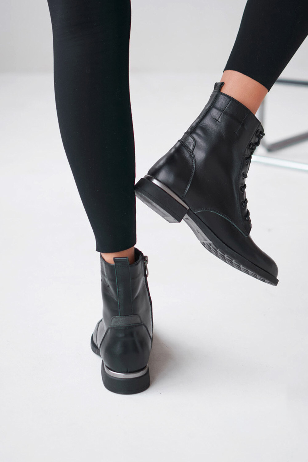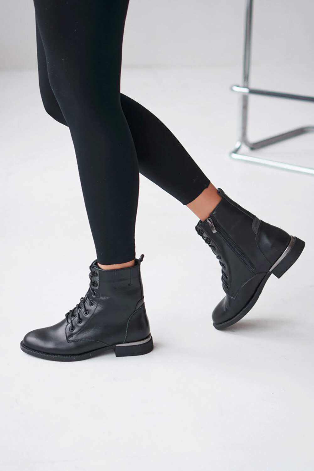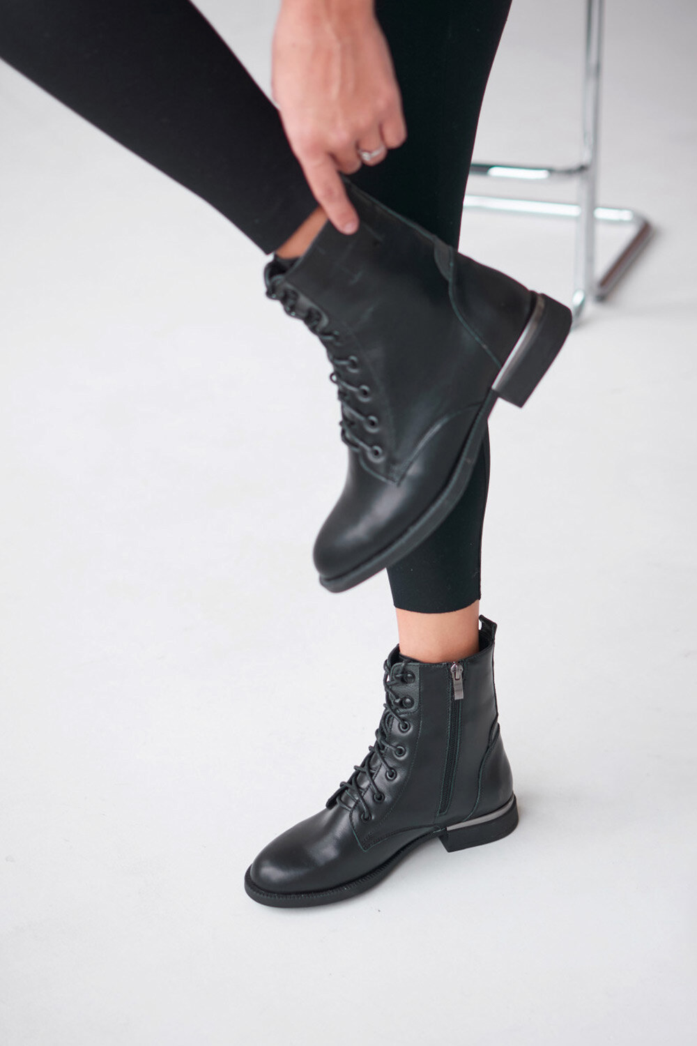 - Модель сочетает в себе удобство благодаря подбору высотой 2 см и функциональность благодаря шнуровке и застежке-молнии.