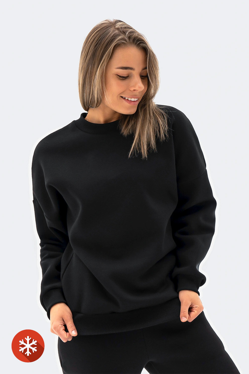 Warmes Damen-Sweatshirt Oversize 3 Schwarz Teamv 8034203