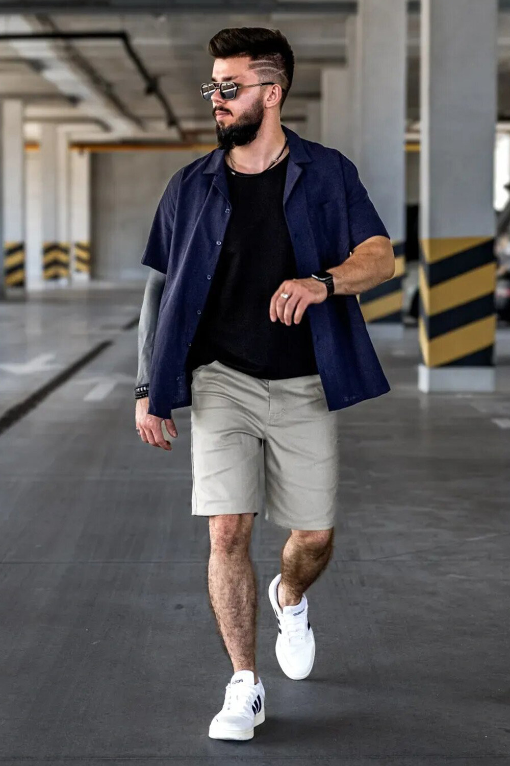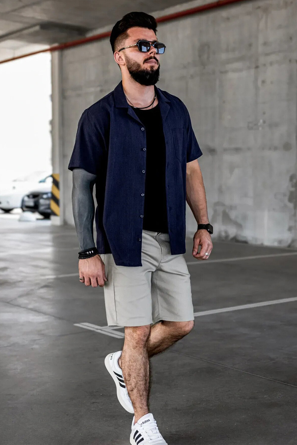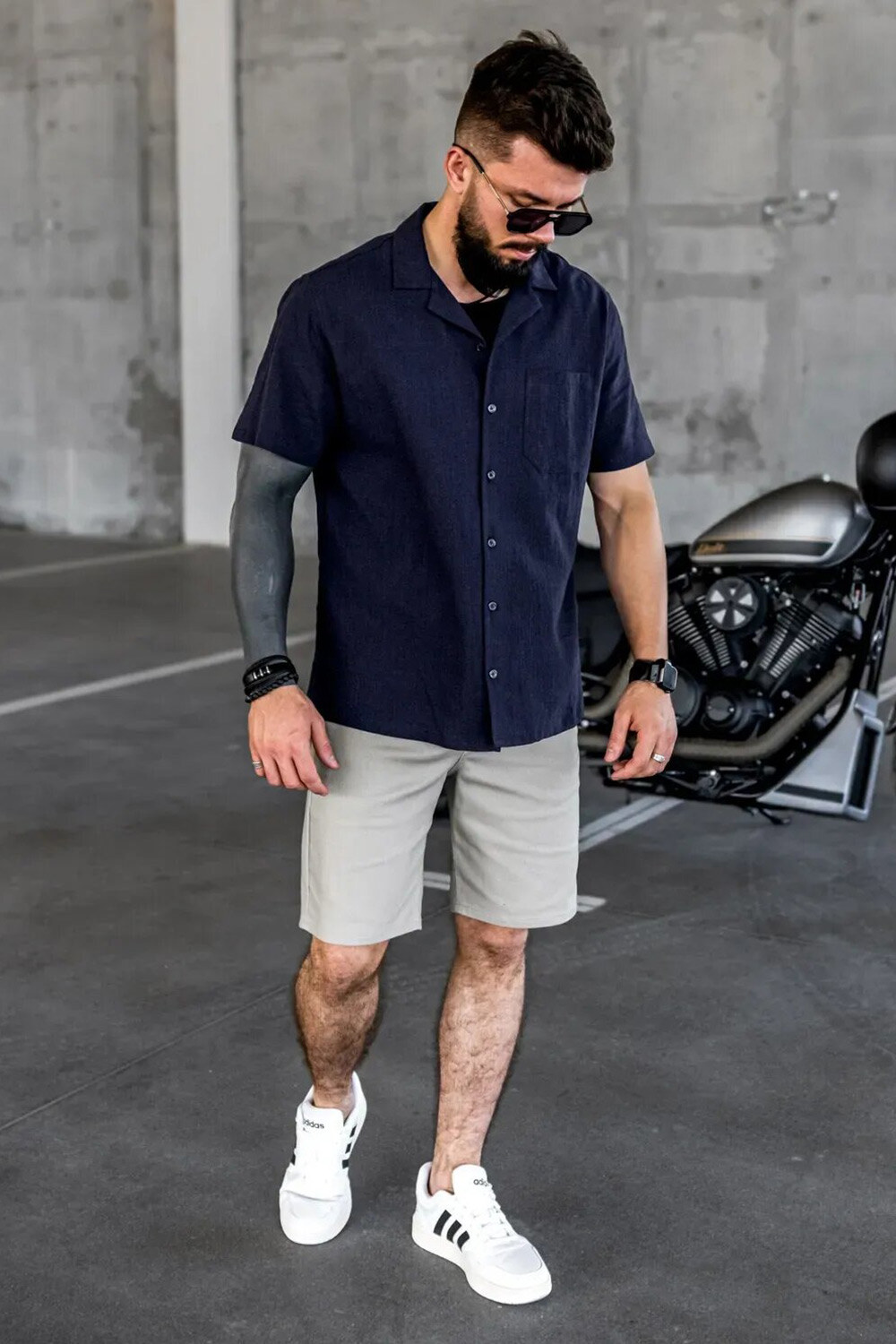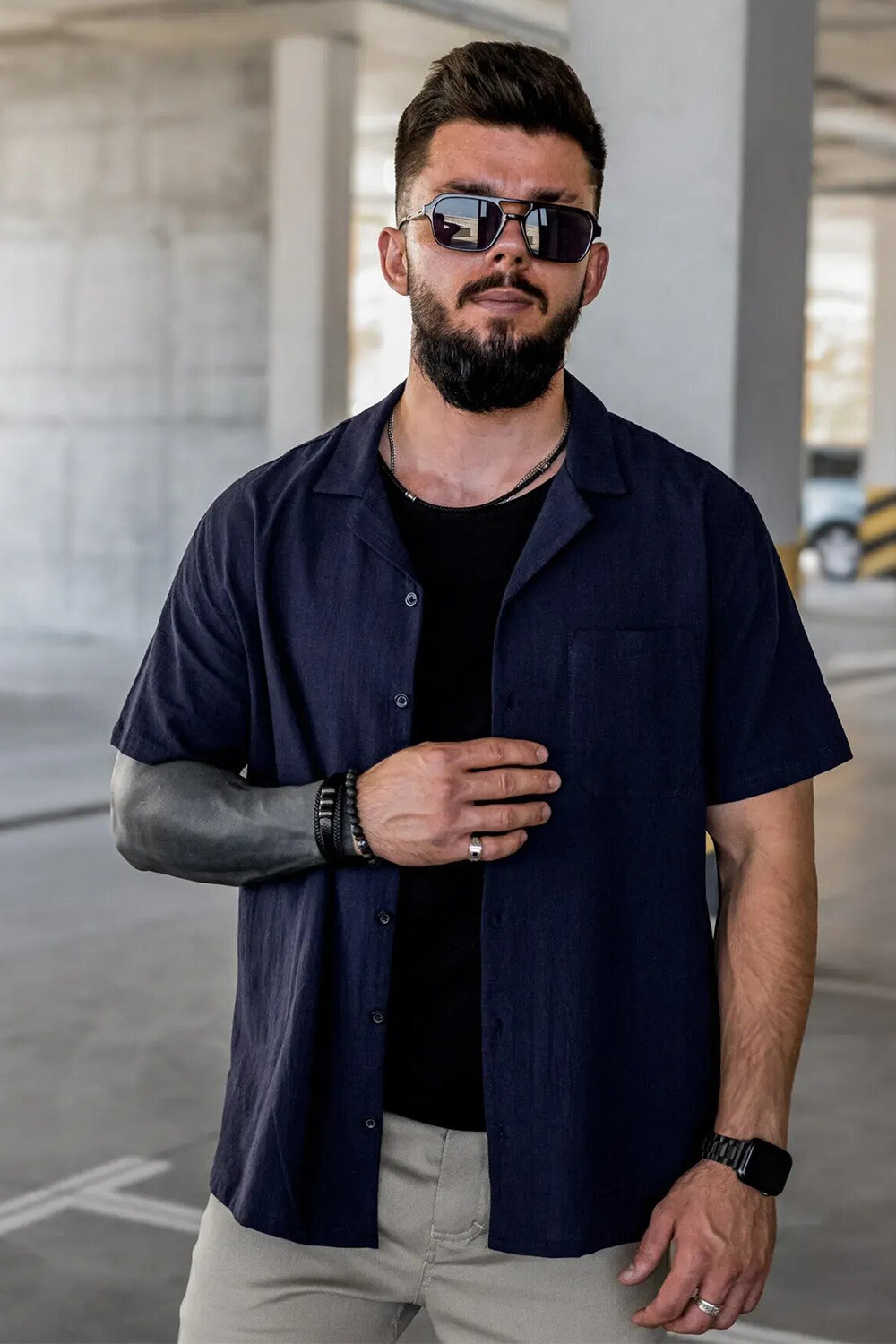 Mens Old Money Short Sleeve Shirt Navy Teamv 8034335