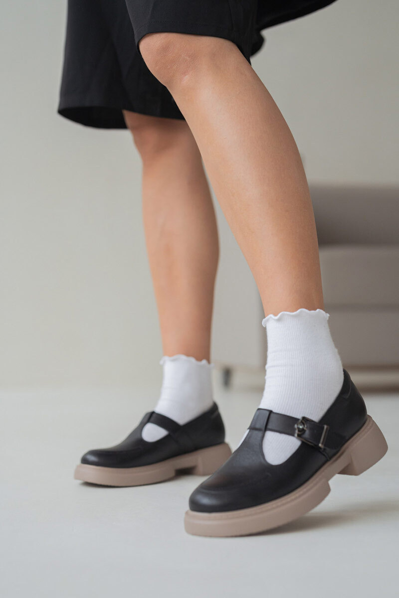 Czarne, skórzane półbuty damskie z beżową podeszwą. 4206160