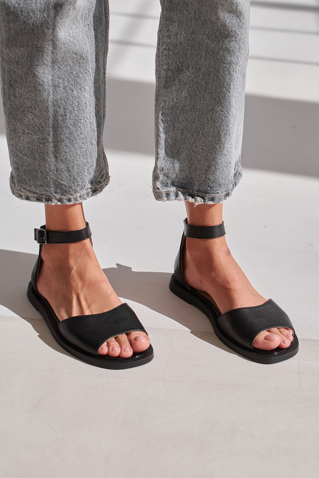 Women's black leather sandals 4206166