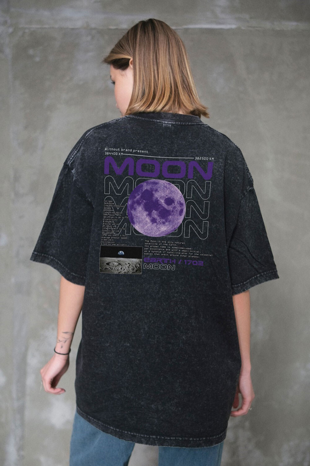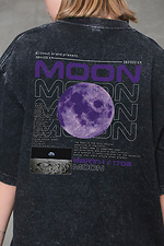Women's Washed Oversized Moon Print T-Shirt Black Without 8049609