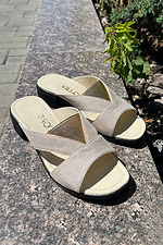 Women's Light Pink Leather Low Heel Slippers 4206196
