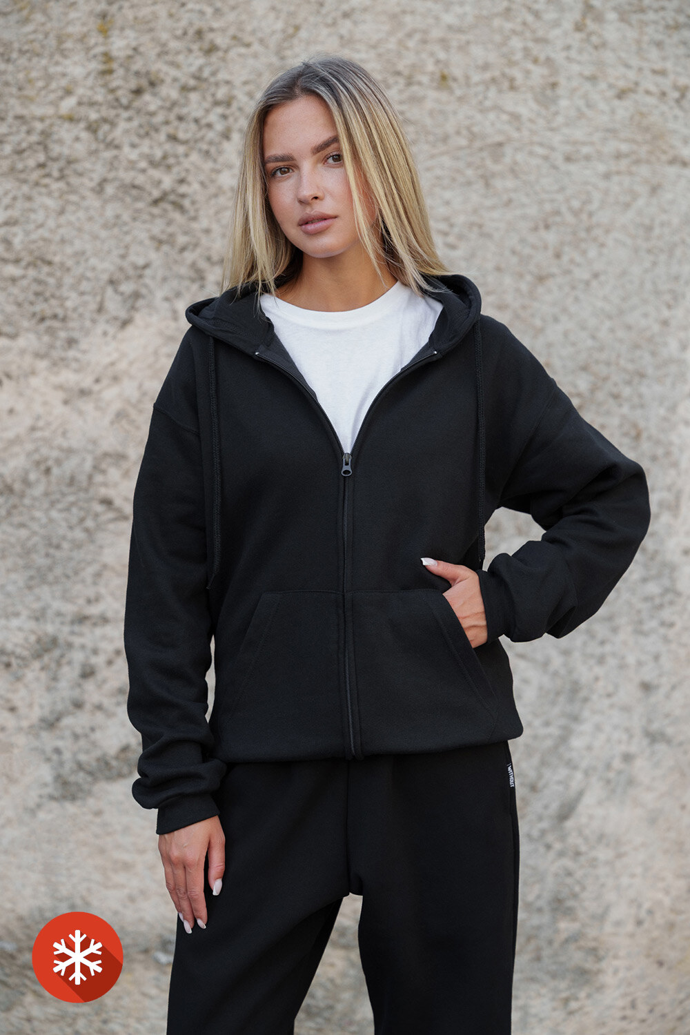 - This oversized zip-up hoodie is a stylish and comfortable solution for everyday wear.