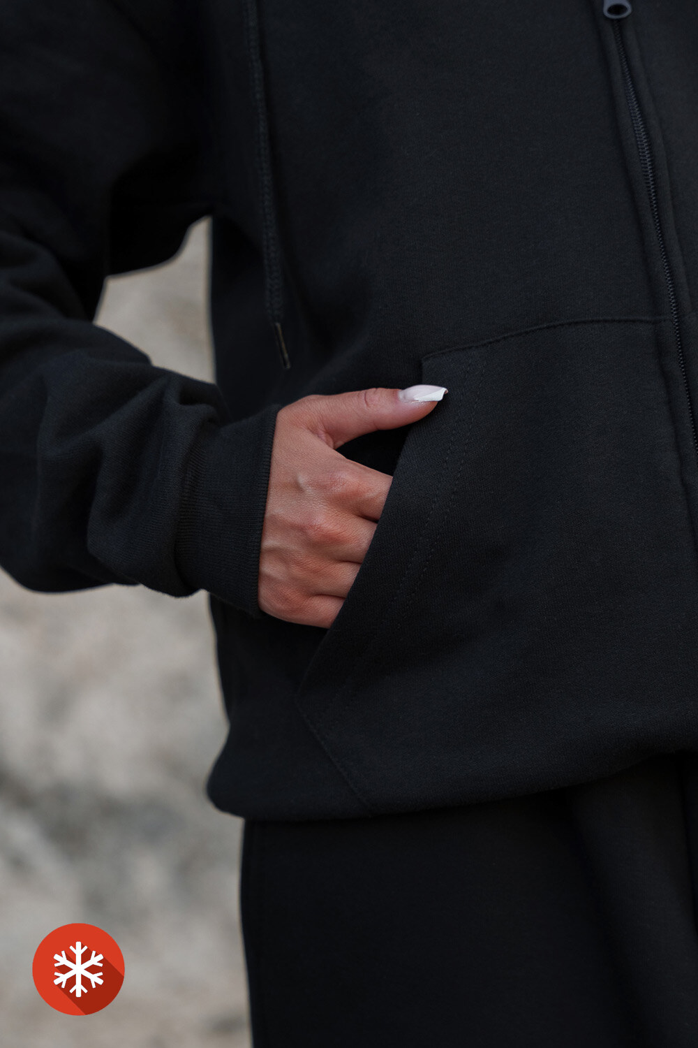 - Elasticated kangaroo sleeves.