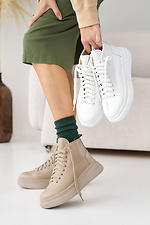 Zimowe, beżowe botki typu chelsea na niskim obcasie - skóra naturalna