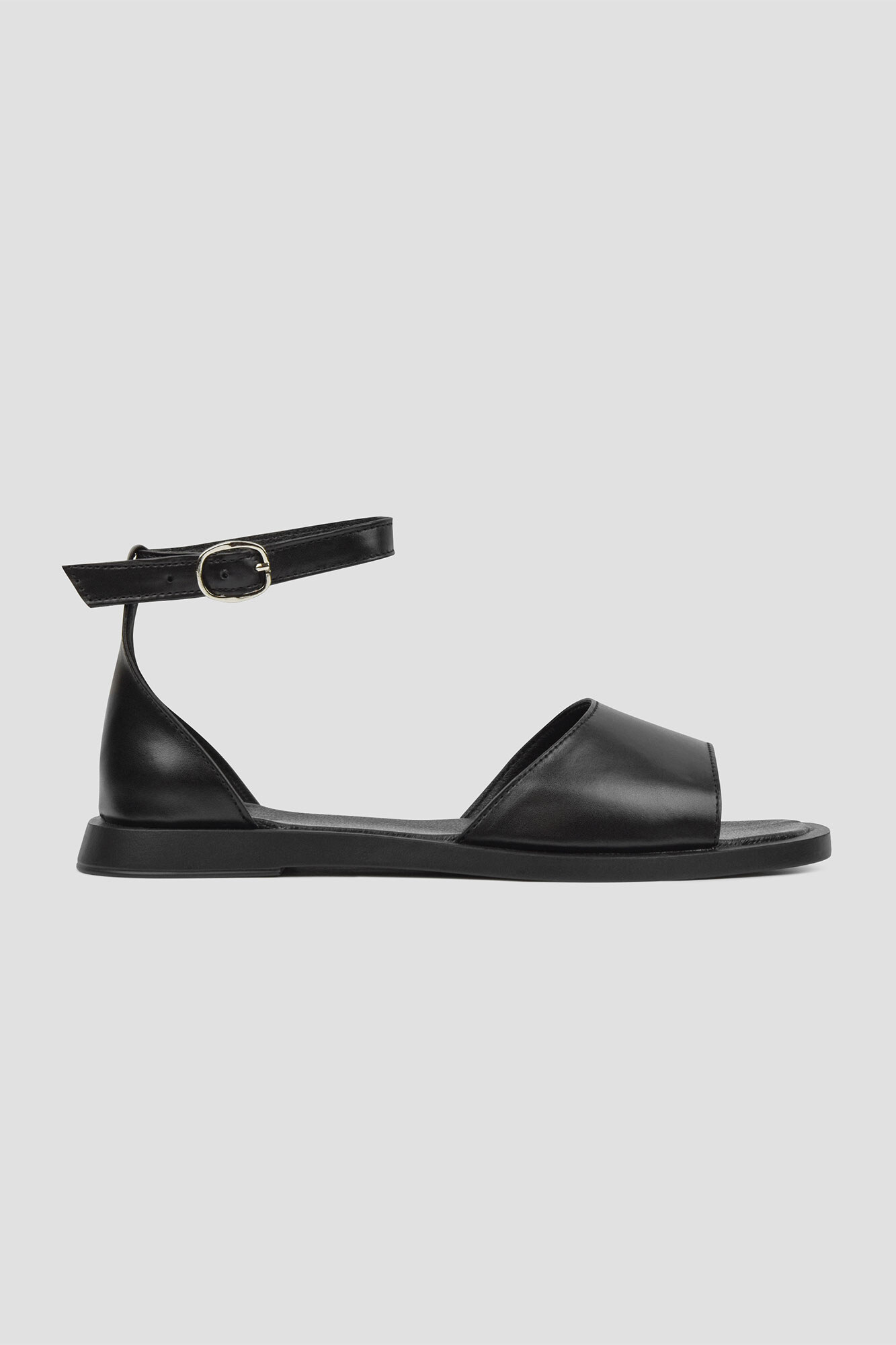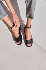 Schwarze Ledersandalen mit niedrigem Absatz und Schnalle