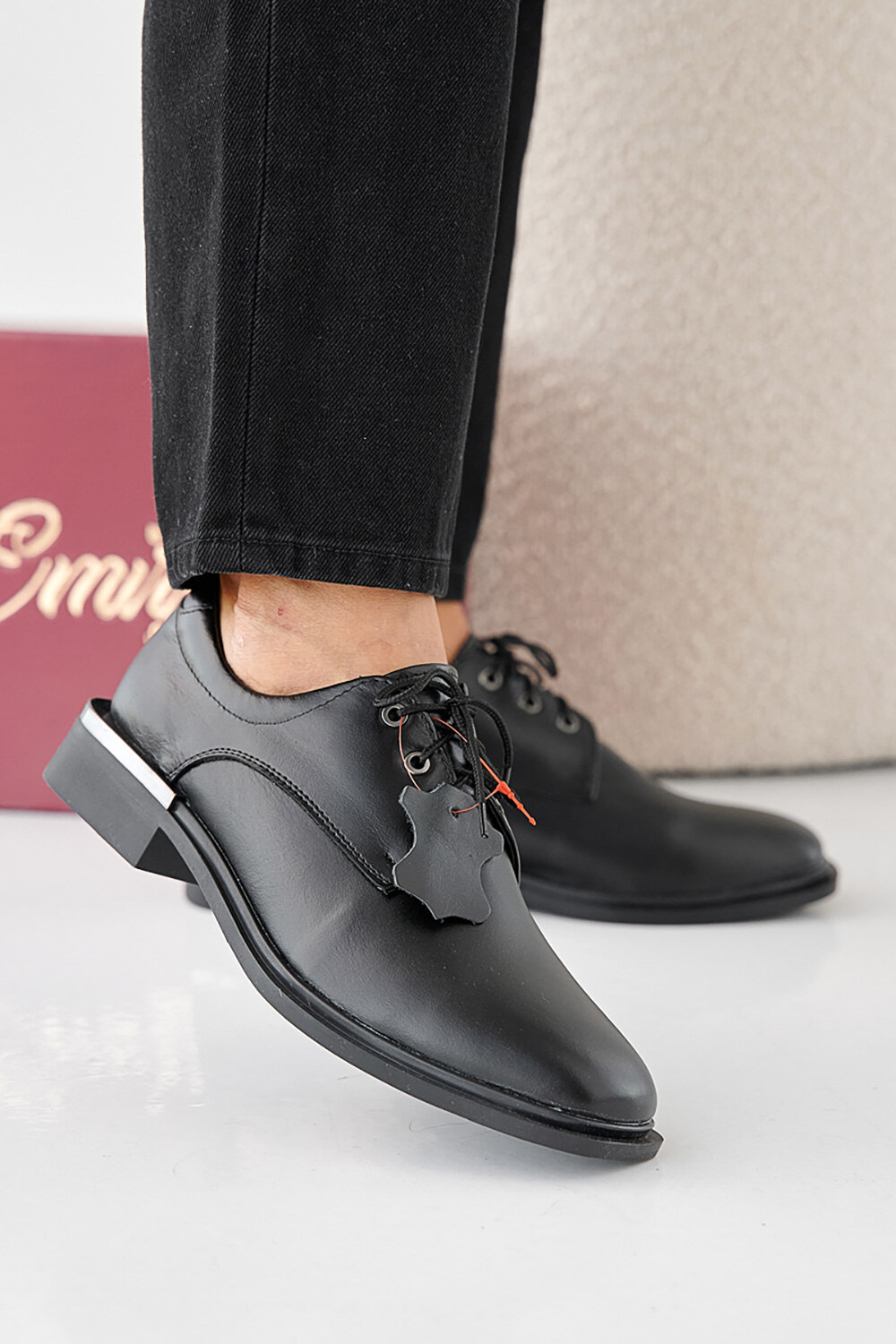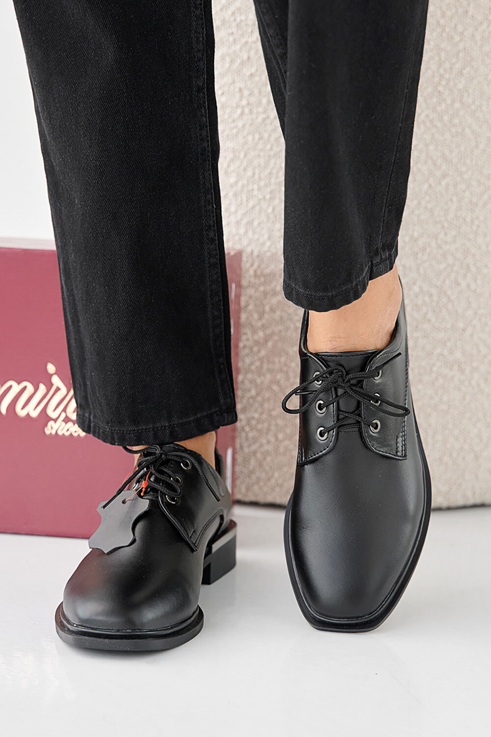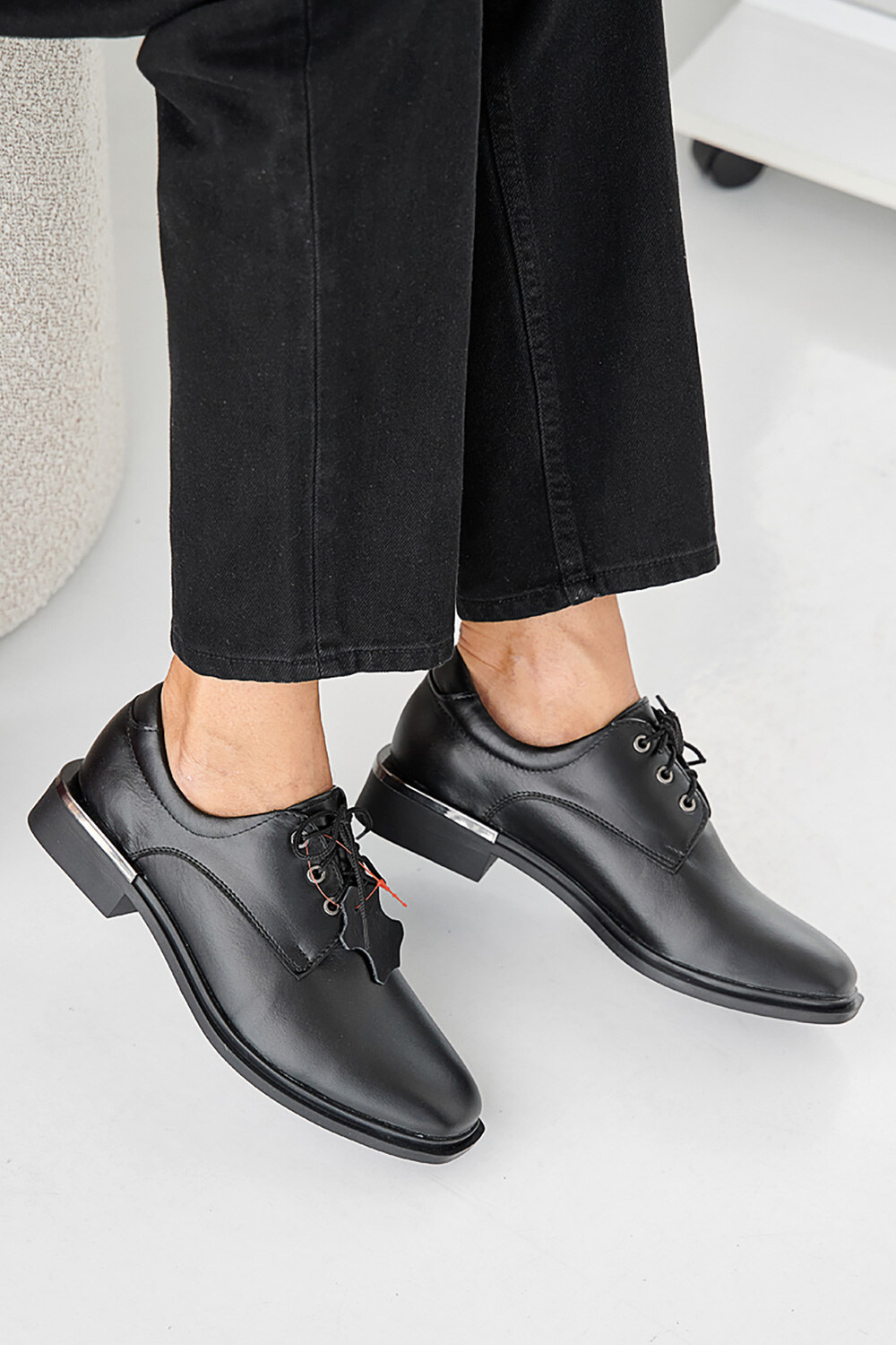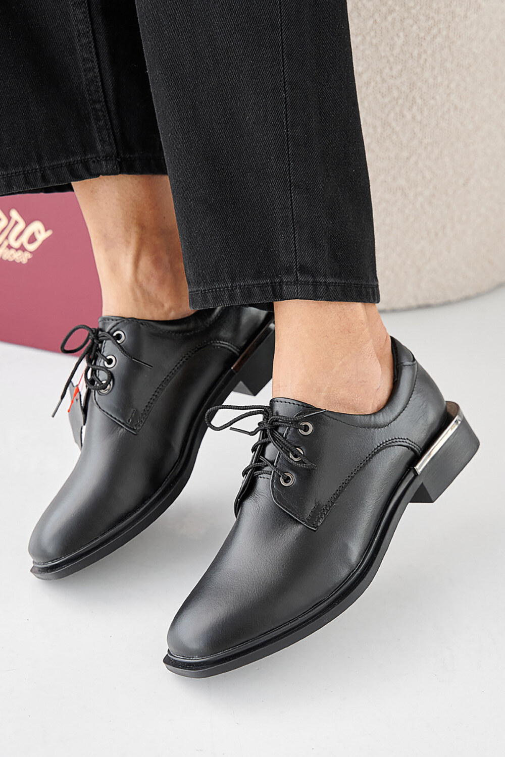 Klassische Damen-Lederschuhe mit niedrigem Absatz