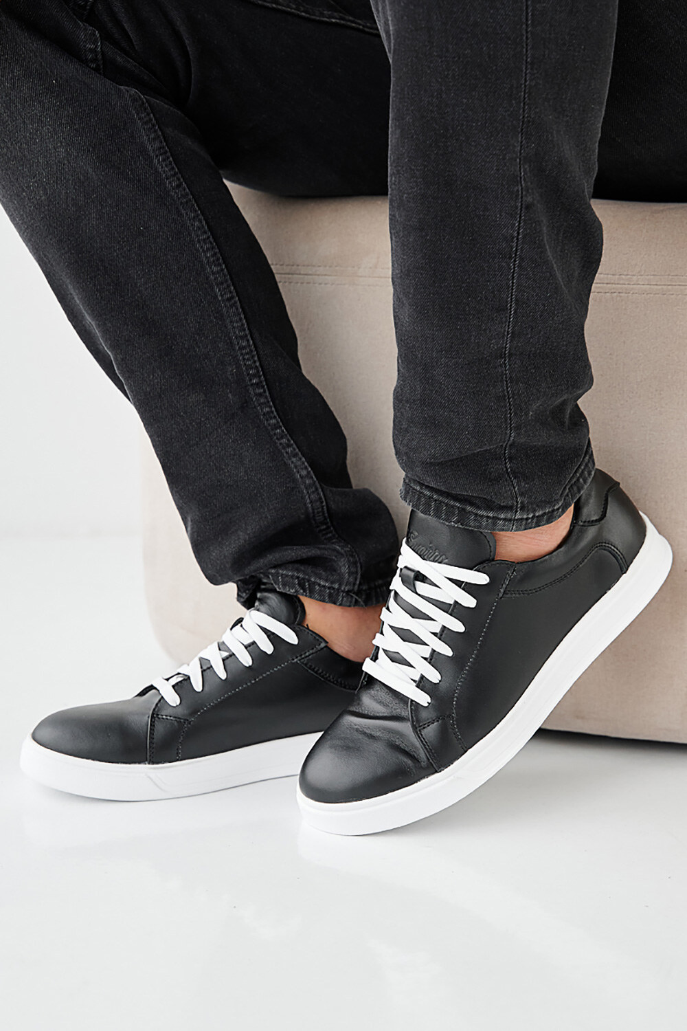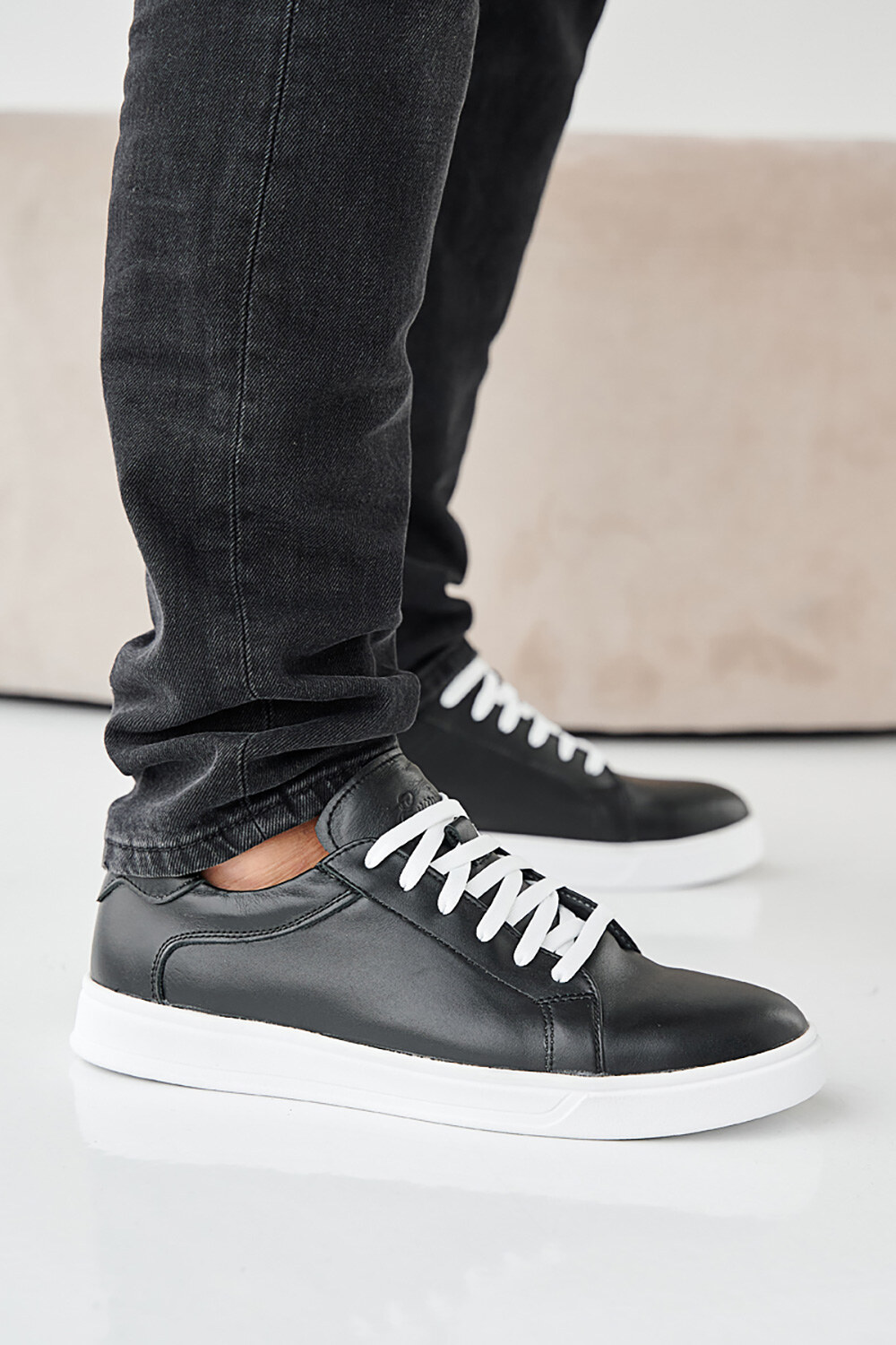 Men's spring-autumn black leather sneakers 2505381