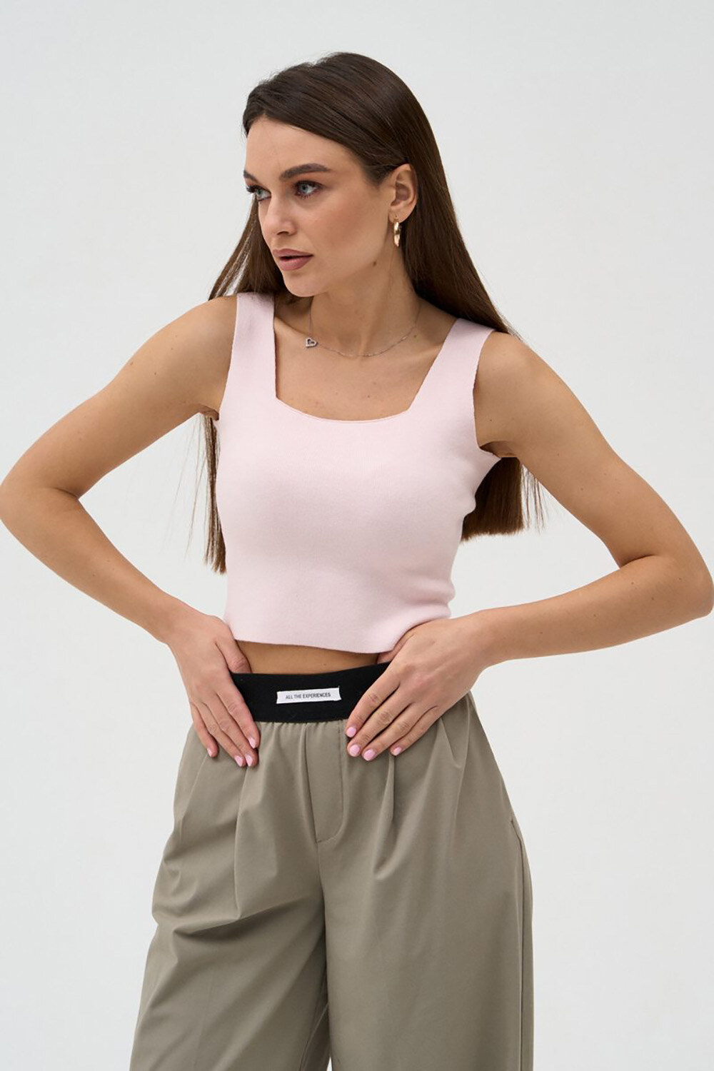 • Класичний в'язаний топ виконаний з віскозної пряжі з додаванням еластичної нитки, що допомагає тримати форму виробу.