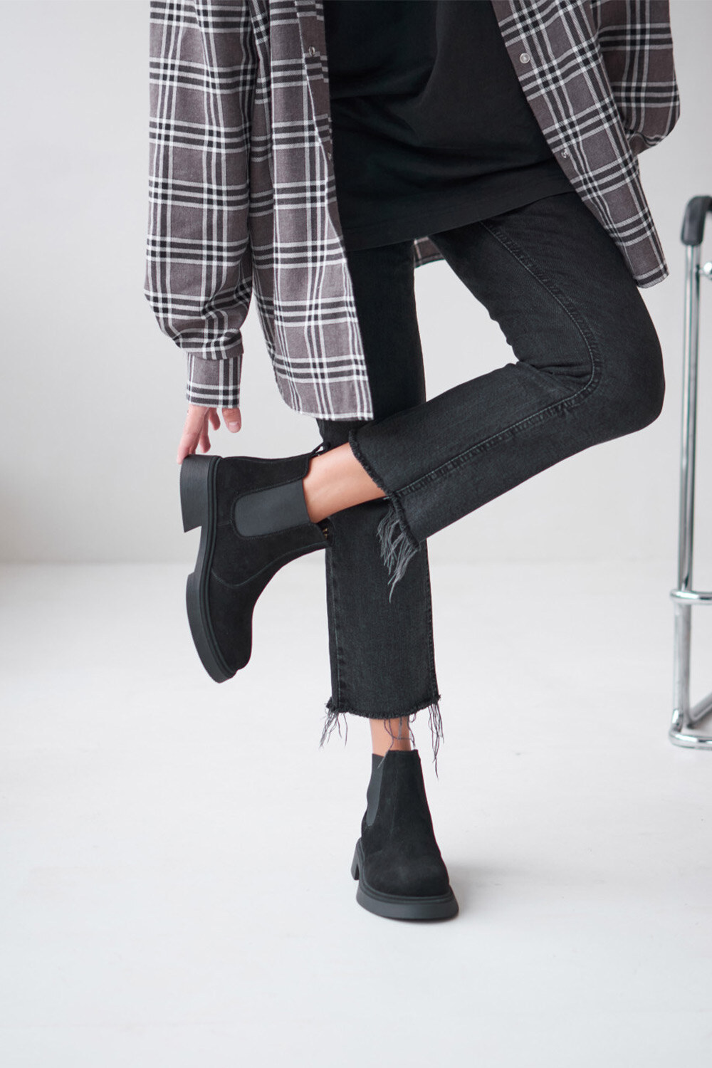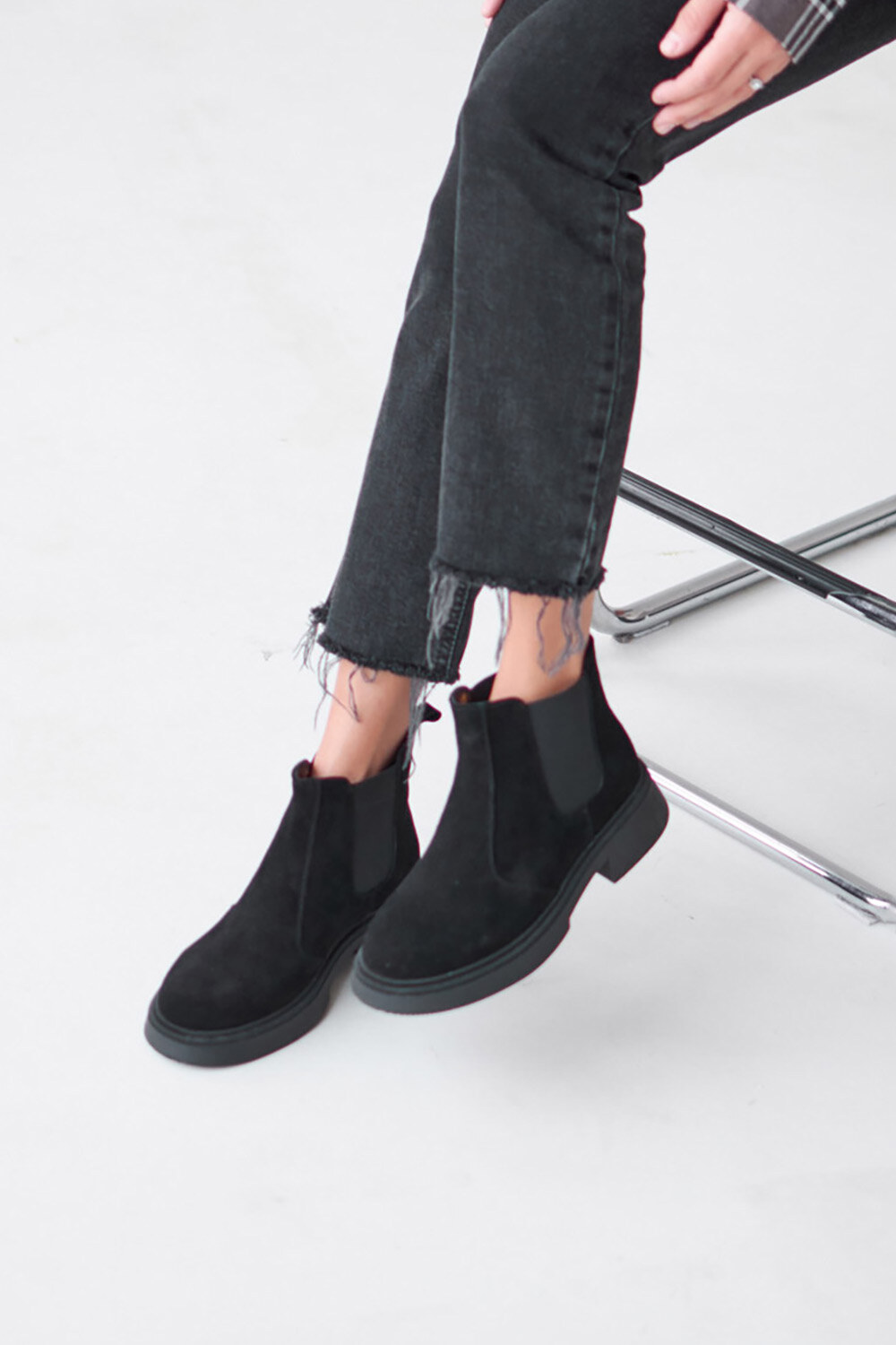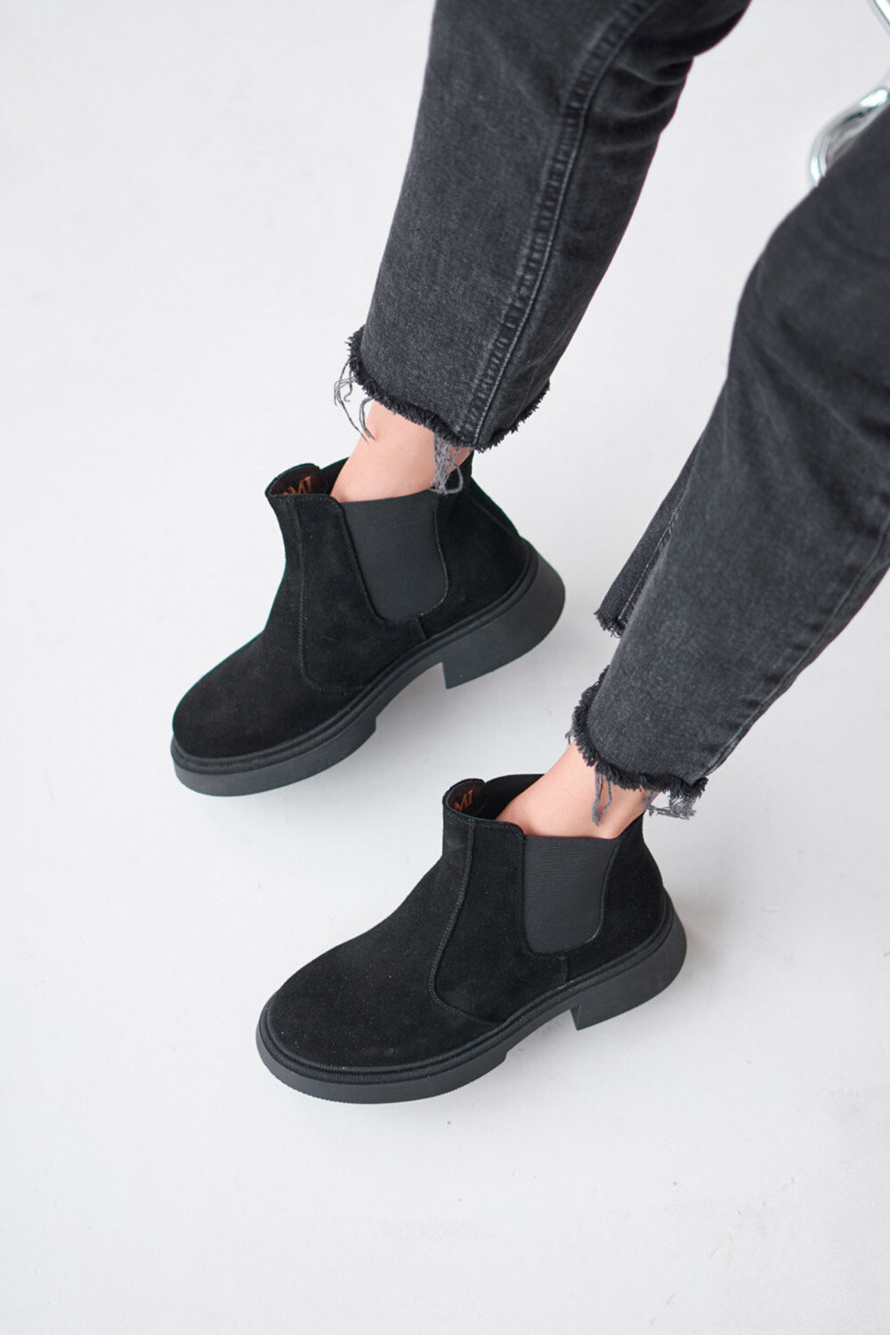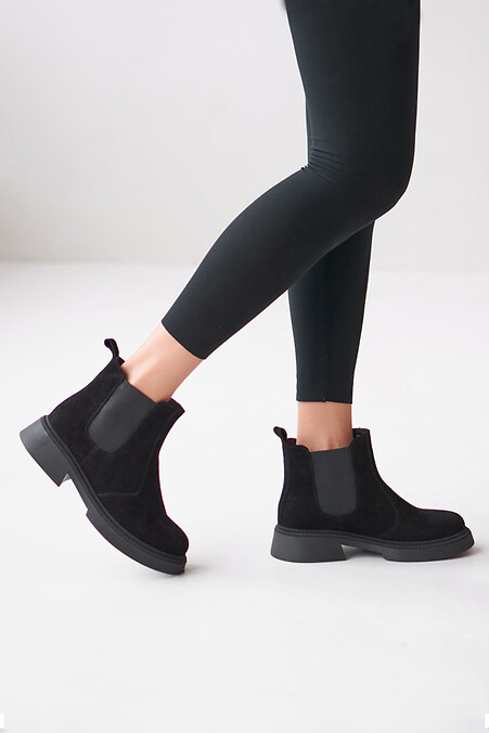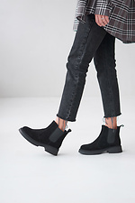 Krótkie, czarne, zimowe kozaki - naturalny zamsz