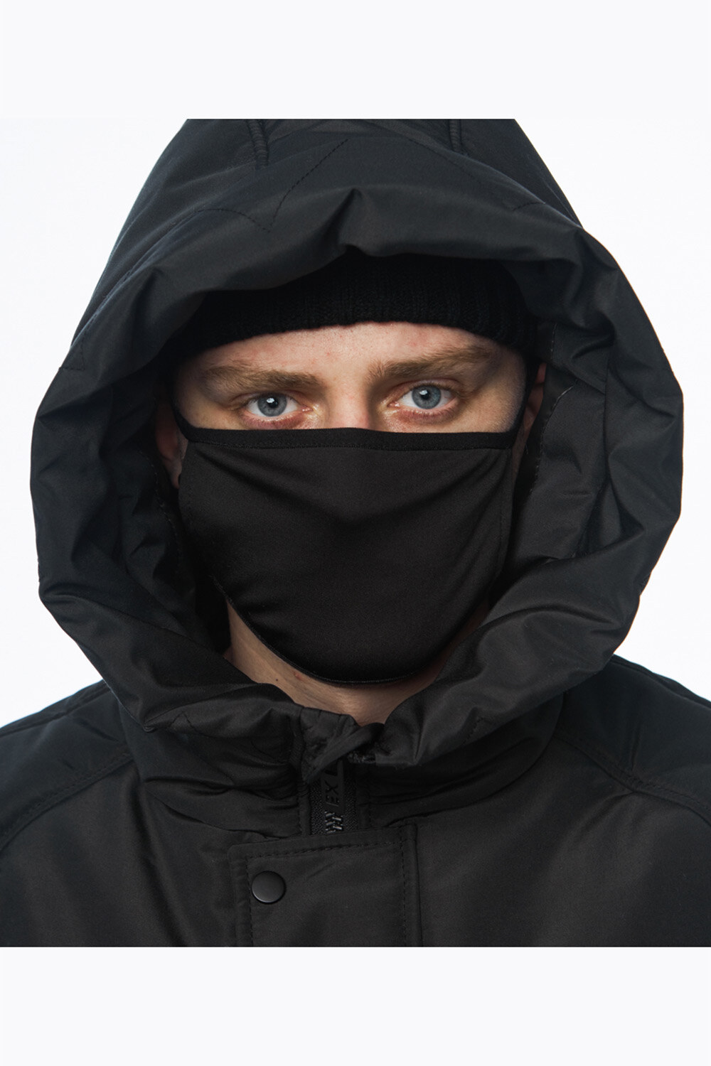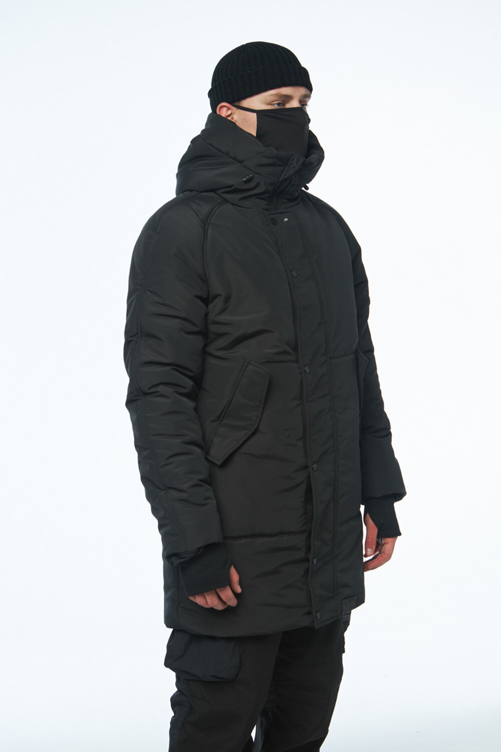 - Глибокий каптур з високою горловиною, який захистить від поривів вітру та снігу.