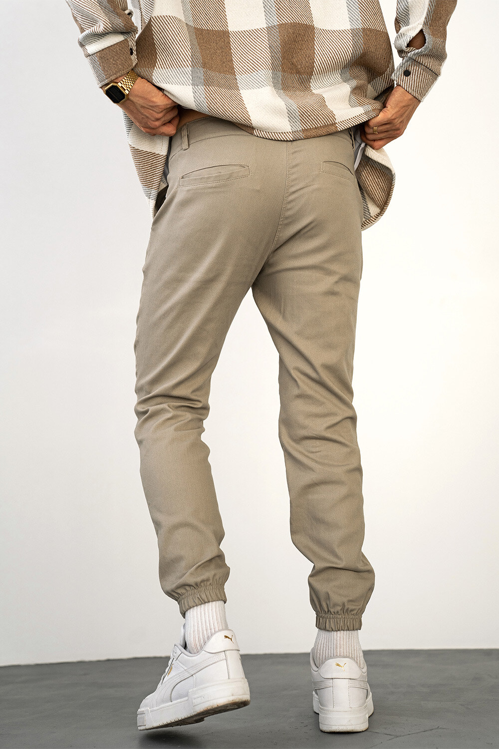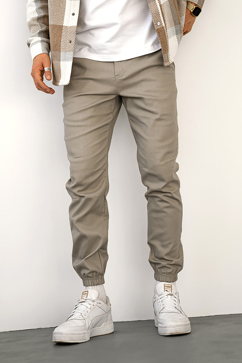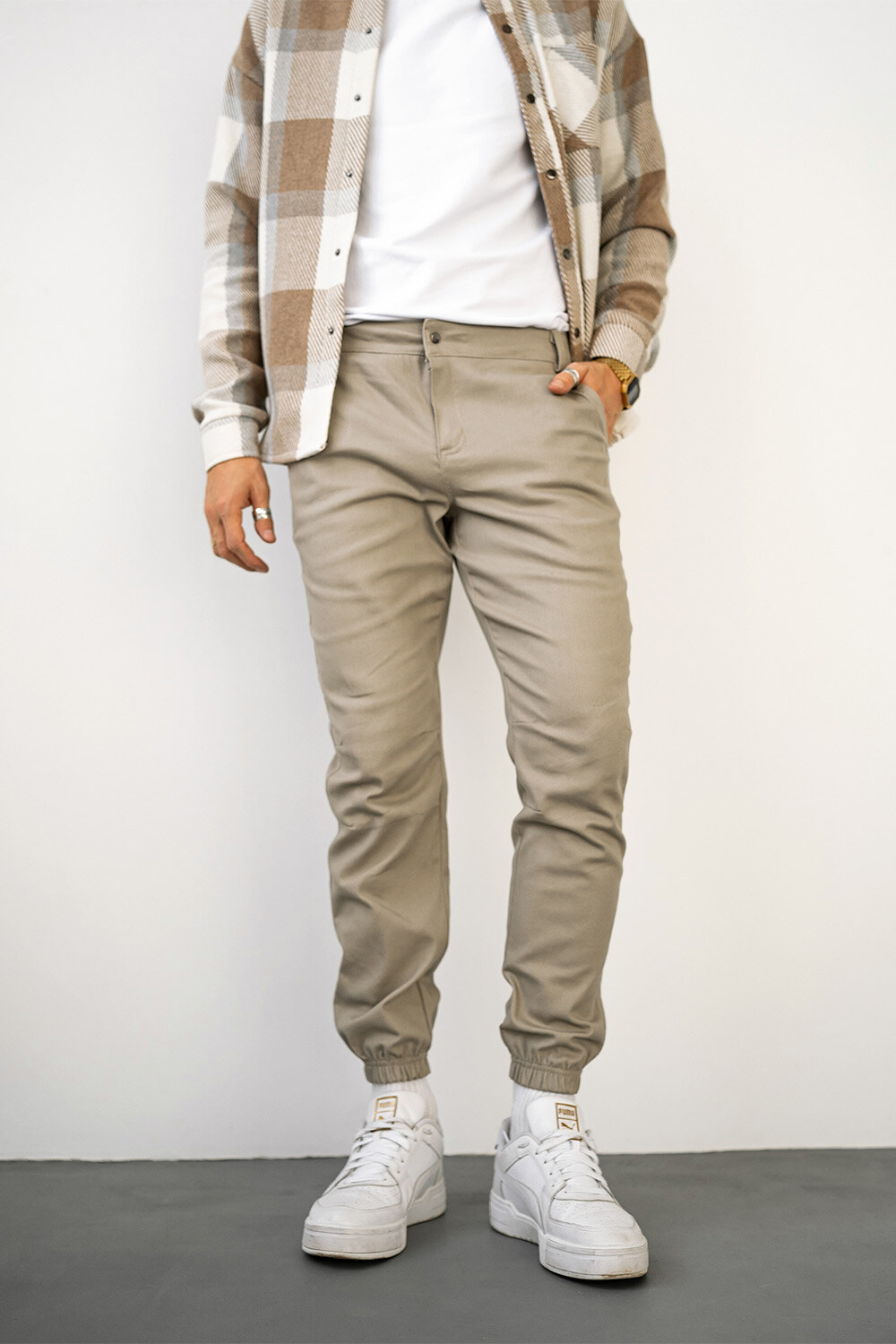 Men's Basic Jogger TWILL Cotton Pants Sand Teamv 8034093