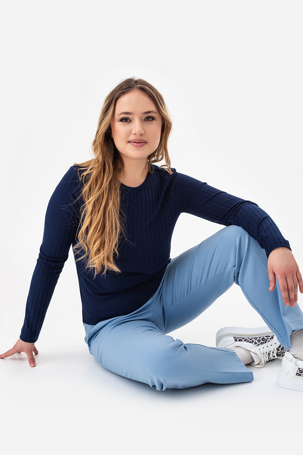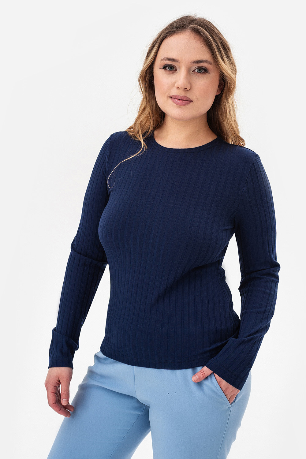 - Цей лонгслів виготовлений з трикотажу в рубчик, що надає виробу текстурного вигляду та забезпечує комфорт у носінні.