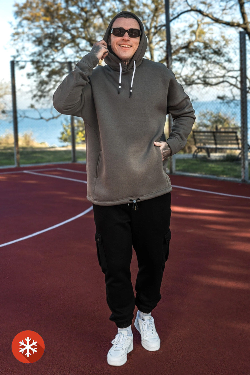 Męska ciepła bluza oversize z nadrukiem MASSCULT Ciemna oliwka Teamv 8034254