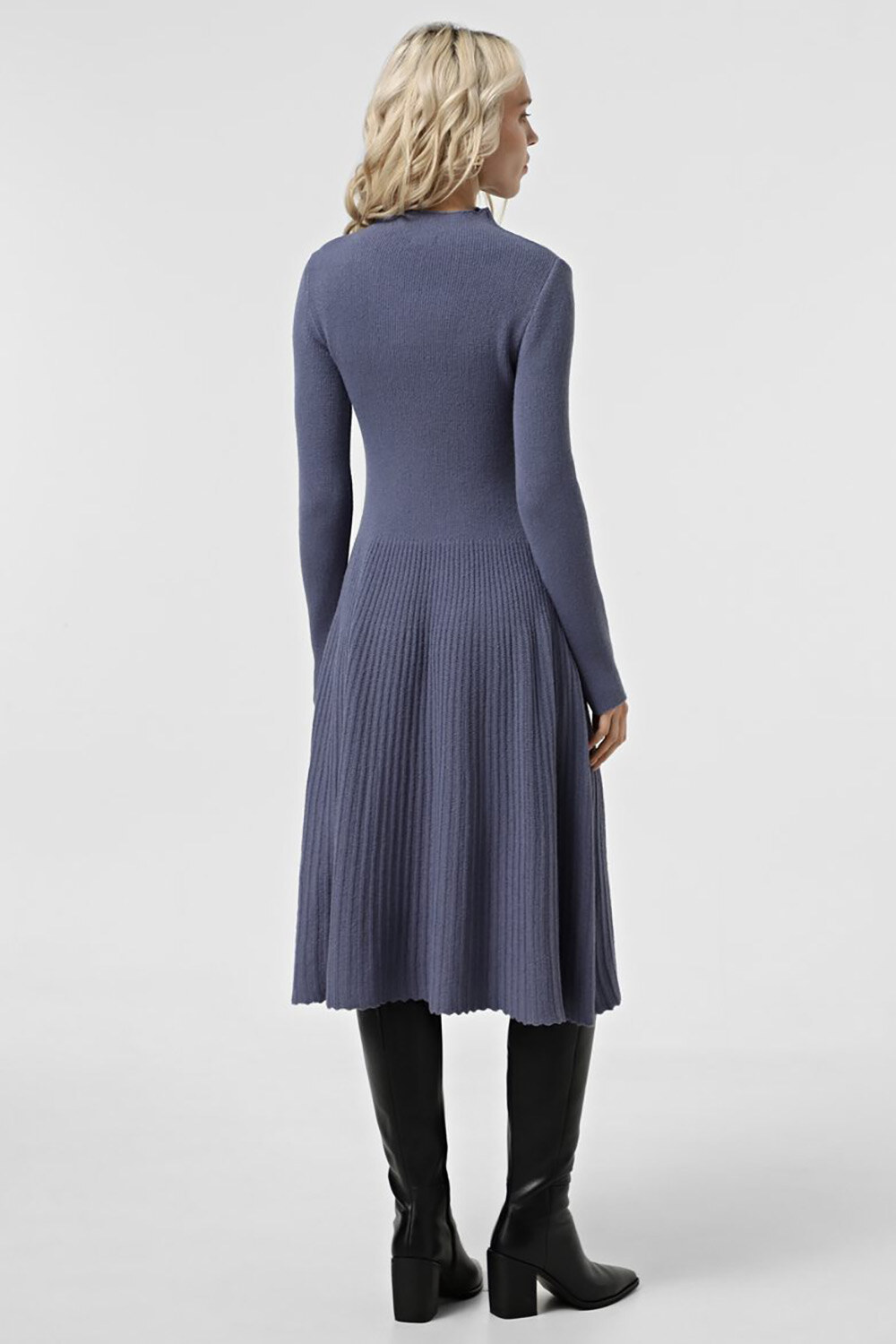 Damenstrickkleid mit Wasserfallkragen und dekorativem Schlitz vorne, hellgrau